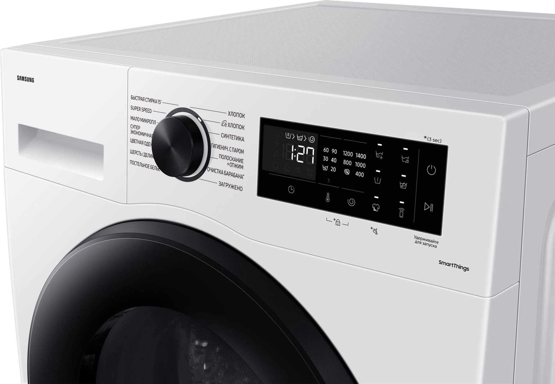 Super Speed. Быстрая стирка. Постельное белье. Хлопок. Цветное белье. Самоочистка. Е Хлопок. Гигиеническая обработка паром. Less Microfiber. Полоскание+отжим. Eco. Синтетика. Шерсть/деликатные ткани.
