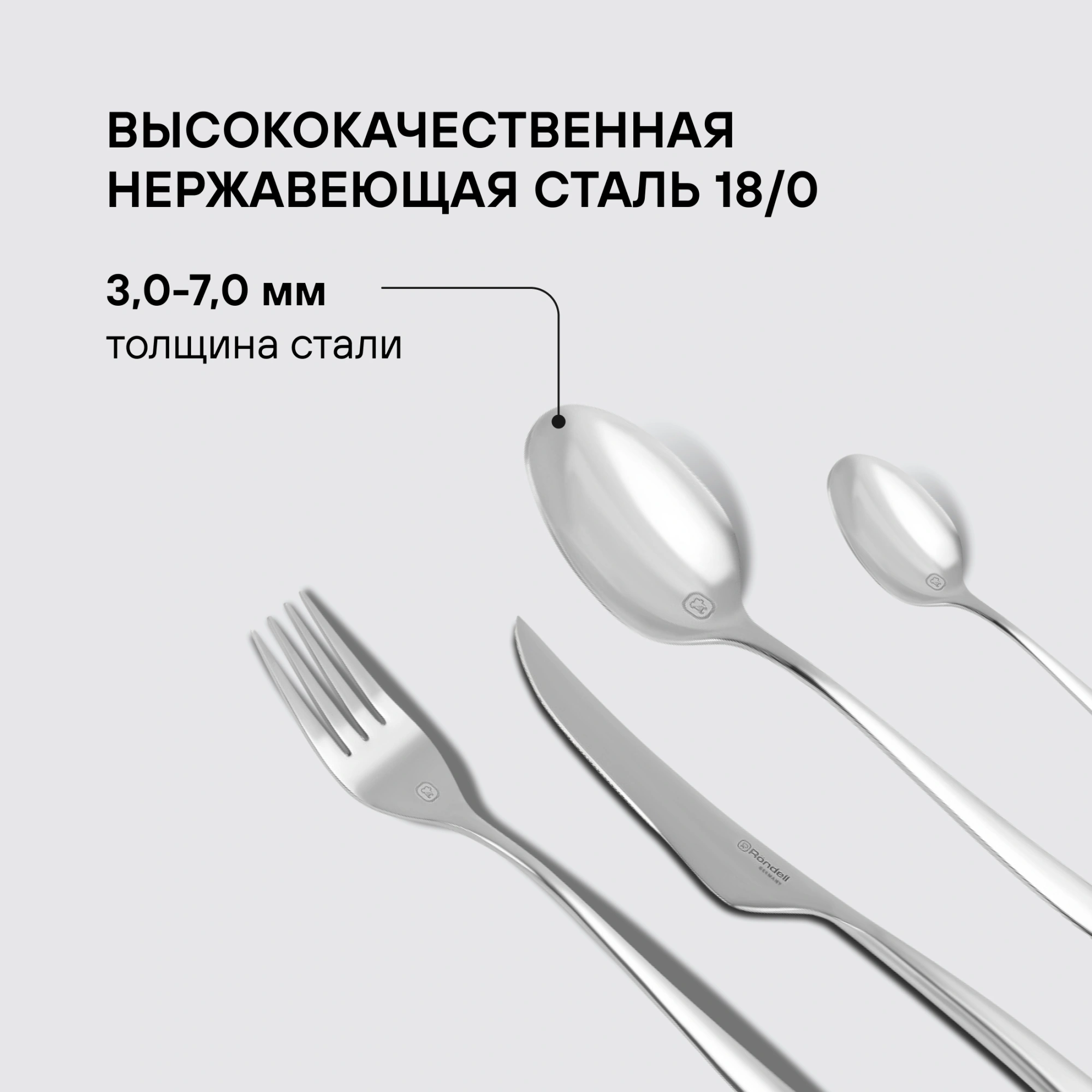 Все предметы коллекции изготовлены из высококачественной нержавеющей стали толщиной 3 мм с благородной сатинированной полировкой поверхности. Кстати, их вполне можно преподнести в качестве подарка, ведь в набор входит красивая упаковочная коробка.