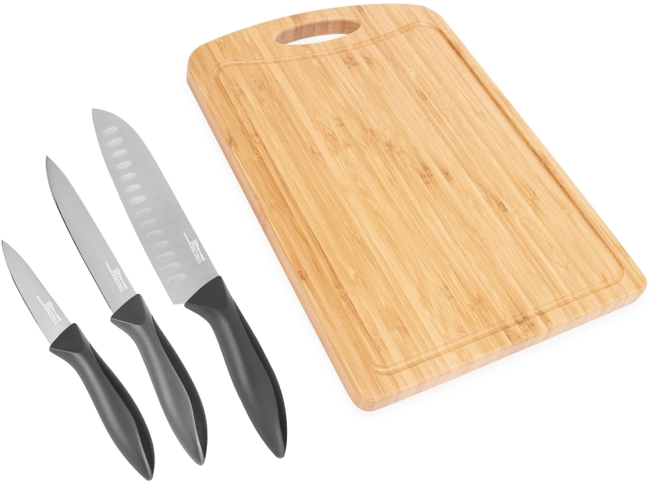 Универсальный нож, нож для чистки овощей и поварской нож, разделочная доска из бамбука 36х25 см.