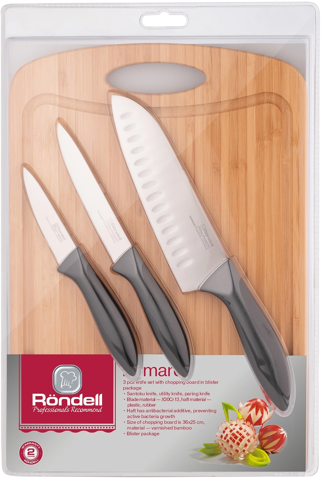 Все ножи Primarch изготовлены из высококачественной нержавеющей стали (частая заточка не потребуется!) и имеют удобные пластиковые рукоятки с прорезиненными вставками, обладающие антибактериальными свойствами. В наборе также есть удобная разделочная доска, которая никогда не бывает лишней.
