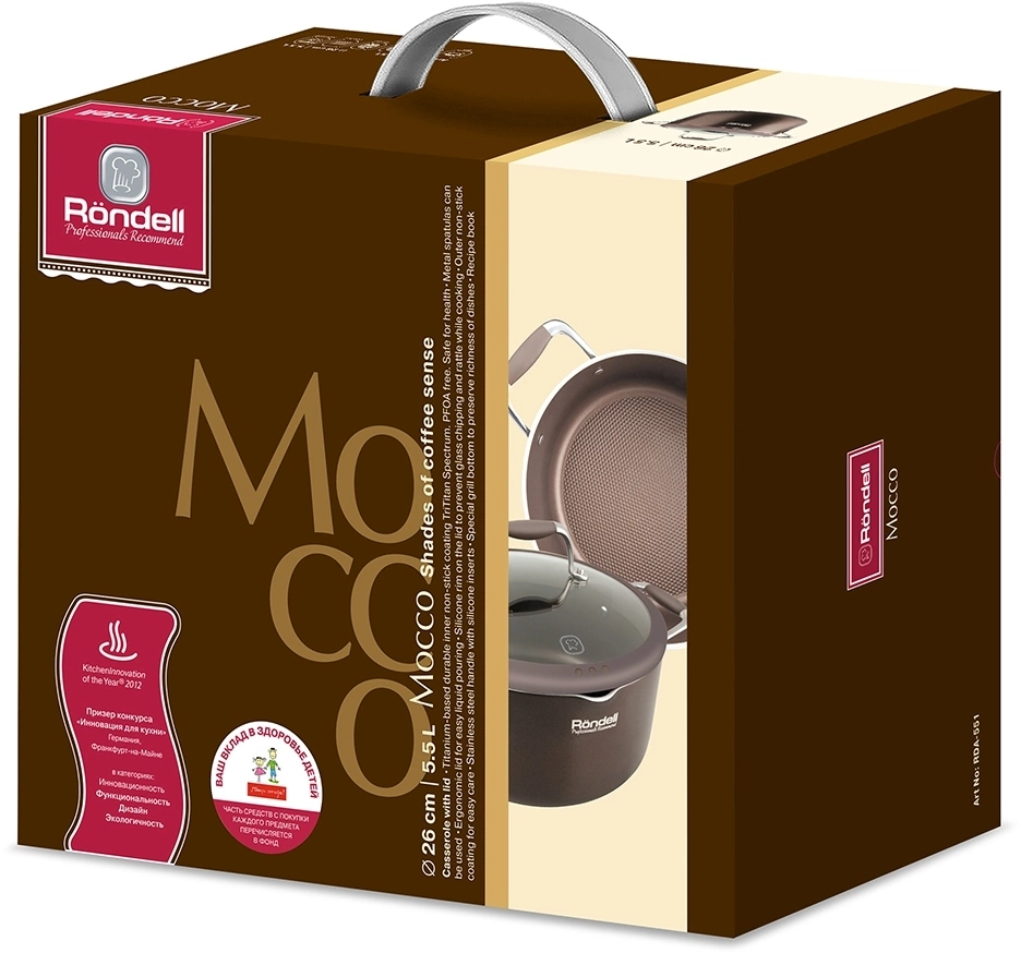 Коллекция Mocco&Latte удостоилась награды «Kitchen Innovation 2012». Оригинальное сочетание материалов: металла и силикона, усиленное внутреннее антипригарное покрытие, дно с микроячейками – все это обеспечивает удобство использования и создание вкусных блюд.