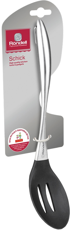 Рукоятки кухонных аксессуаров Schick выполнены из нержавеющей стали, имеют продуманную анатомическую необыкновенно удобную форму. Рабочие поверхности предметов изготовлены из черного силикона, который отлично выдерживает высокие температуры (до 230 °С) и не повреждают даже самое деликатное покрытие.