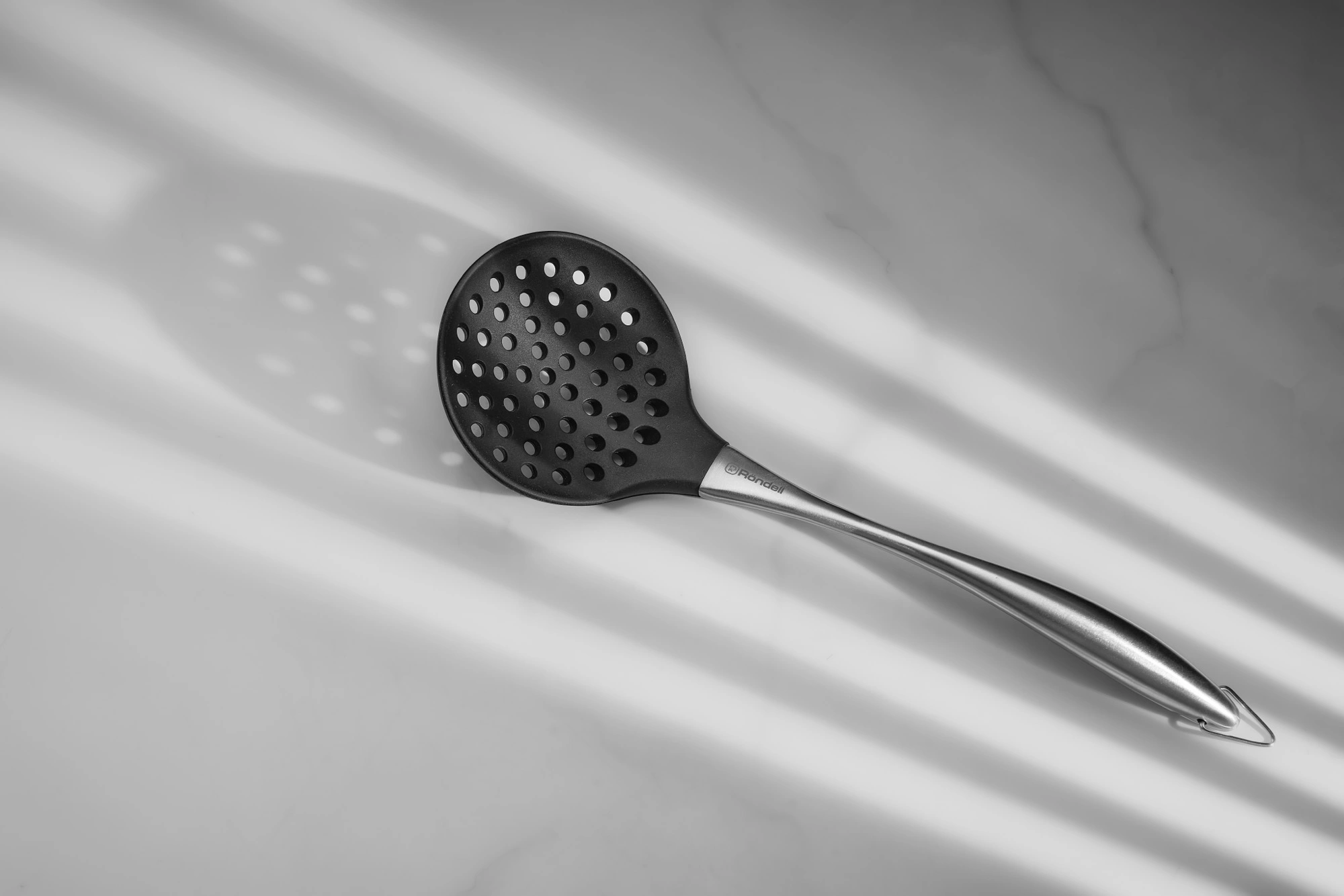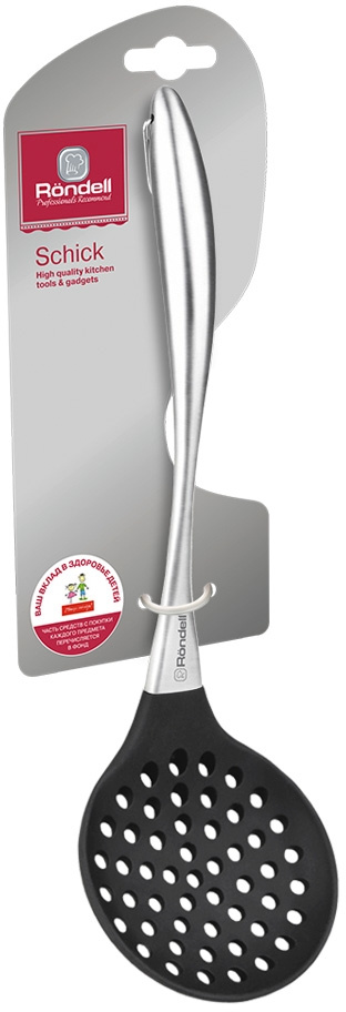 Рукоятки кухонных аксессуаров Schick выполнены из нержавеющей стали, имеют продуманную анатомическую необыкновенно удобную форму. Рабочие поверхности предметов изготовлены из черного силикона, который отлично выдерживает высокие температуры (до 230 °С) и не повреждают даже самое деликатное покрытие.