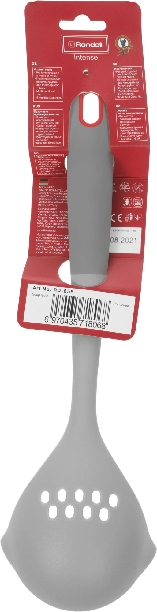 Рабочая часть каждого предмета коллекции Intense изготовлена из пищевого, то есть, абсолютно безопасного для здоровья нейлона, а рукоятки — из высококачественного пластика. Обратите внимание на половник и кулинарную лопатку: в них имеются отверстия, позволяющие, при необходимости, сливать жидкость.