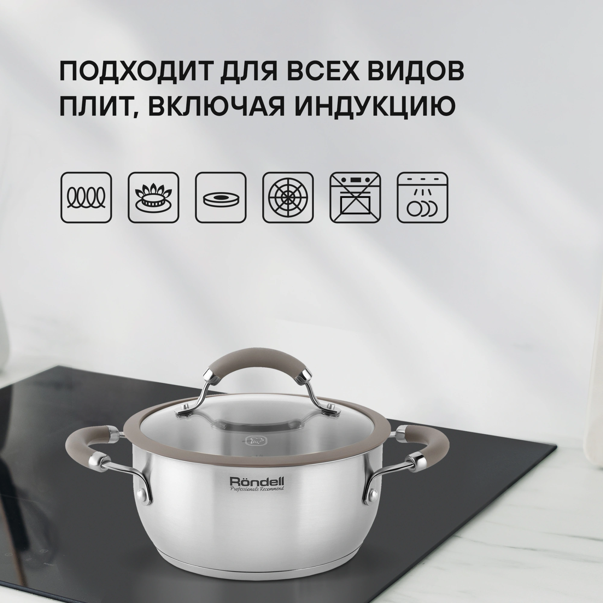 Технология: тройное вштампованное, а затем вплавленное дно без воздушных полостей; Силиконовый обод позволяет крышке закрываться бесшумно, предотвращает сколы при падении. Аксессуары: оригинальная конструкция ручек - комбинация стали и силикона. Ободок крышки из силикона против сколов и трещин