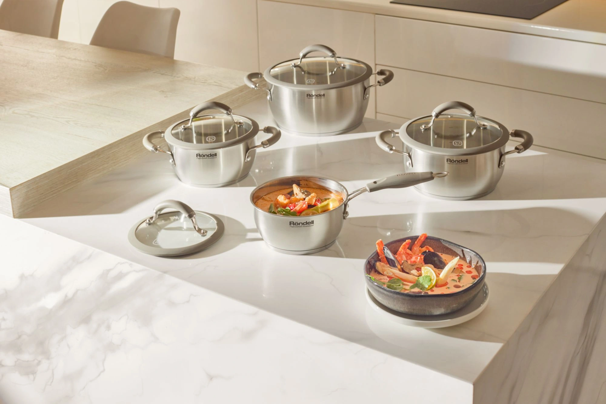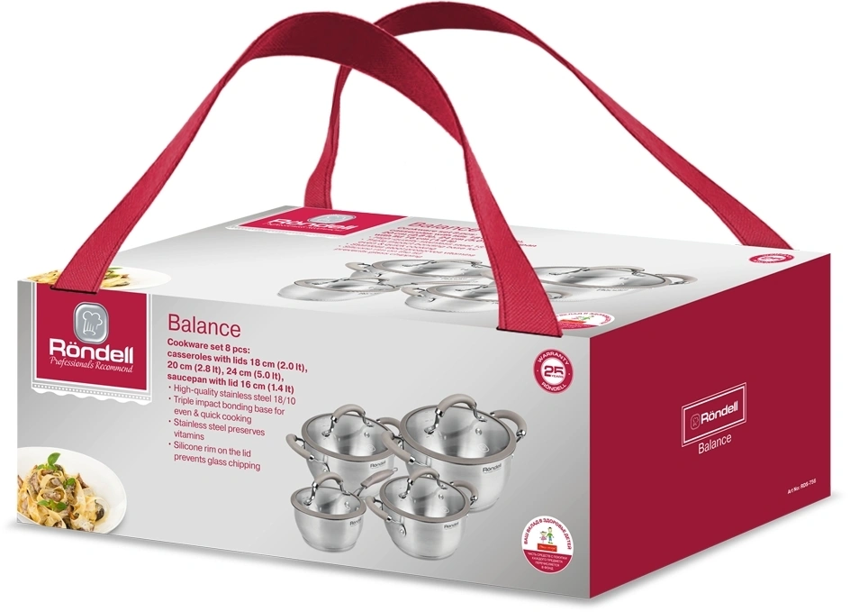 Каждый элемент посуды Balance продуман до мелочей для того, чтобы готовить с любовью и удовольствием. Уникальная технология тройного вштампованного вплавленного дна позволяет равномерно распределять, значительно дольше сохранять тепло стенок и дна посуды, а также предотвратить пригорание блюд.