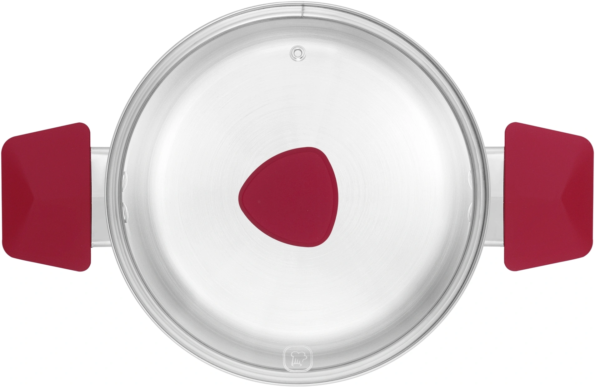 Материал: высококачественная нержавеющая сталь 18/10. Технология: тройное вштампованное, а затем вплавленное дно без воздушных полостей. Материал крышки: термостойкое стекло. Преимущества: эргономичная ручка из бакелита с внешним покрытием Soft Touch.