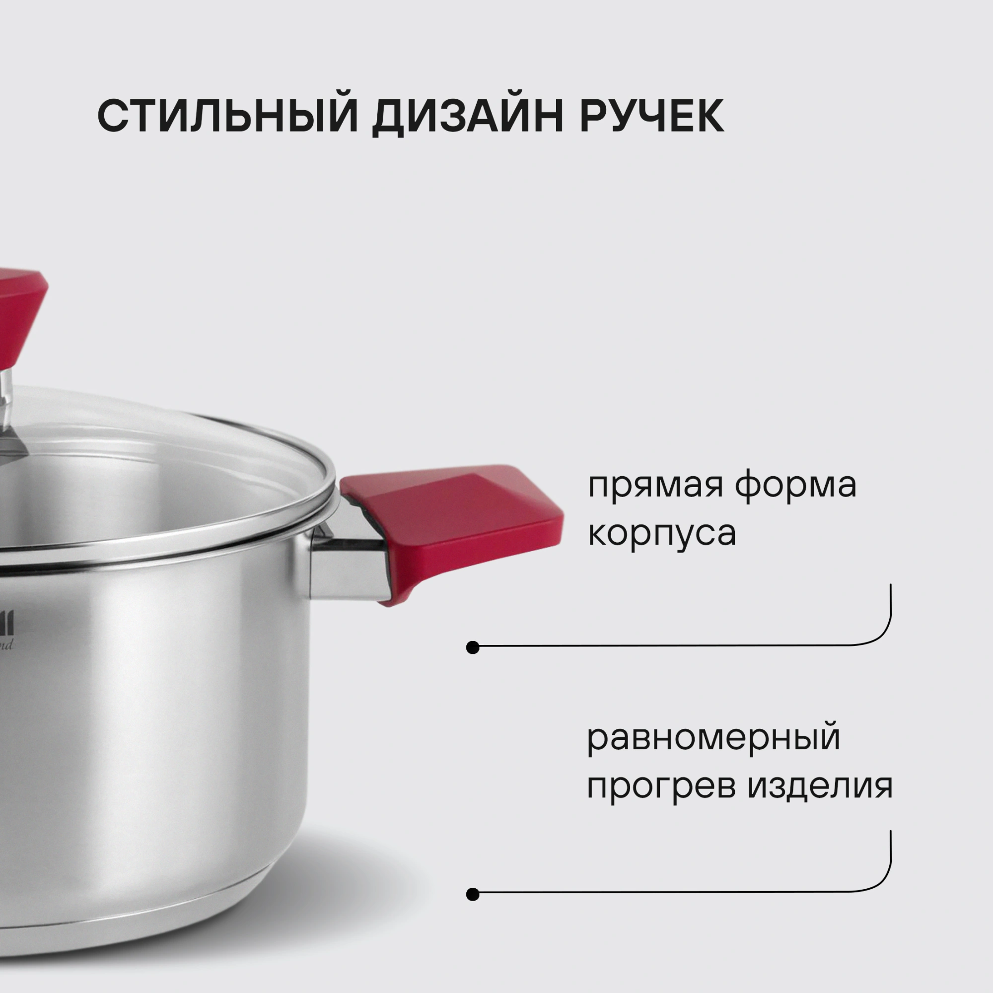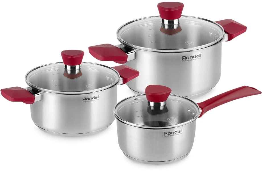 Посуда коллекции Strike, изготовленная из высококачественной нержавеющей стали. Особому комфорту в работе способствуют ручки с покрытием Soft Touch, а внутренние отметки литража позволяют обходиться без использования мерных кружек. Цвет аксессуаров: в одном случае они серые, в другом красные.