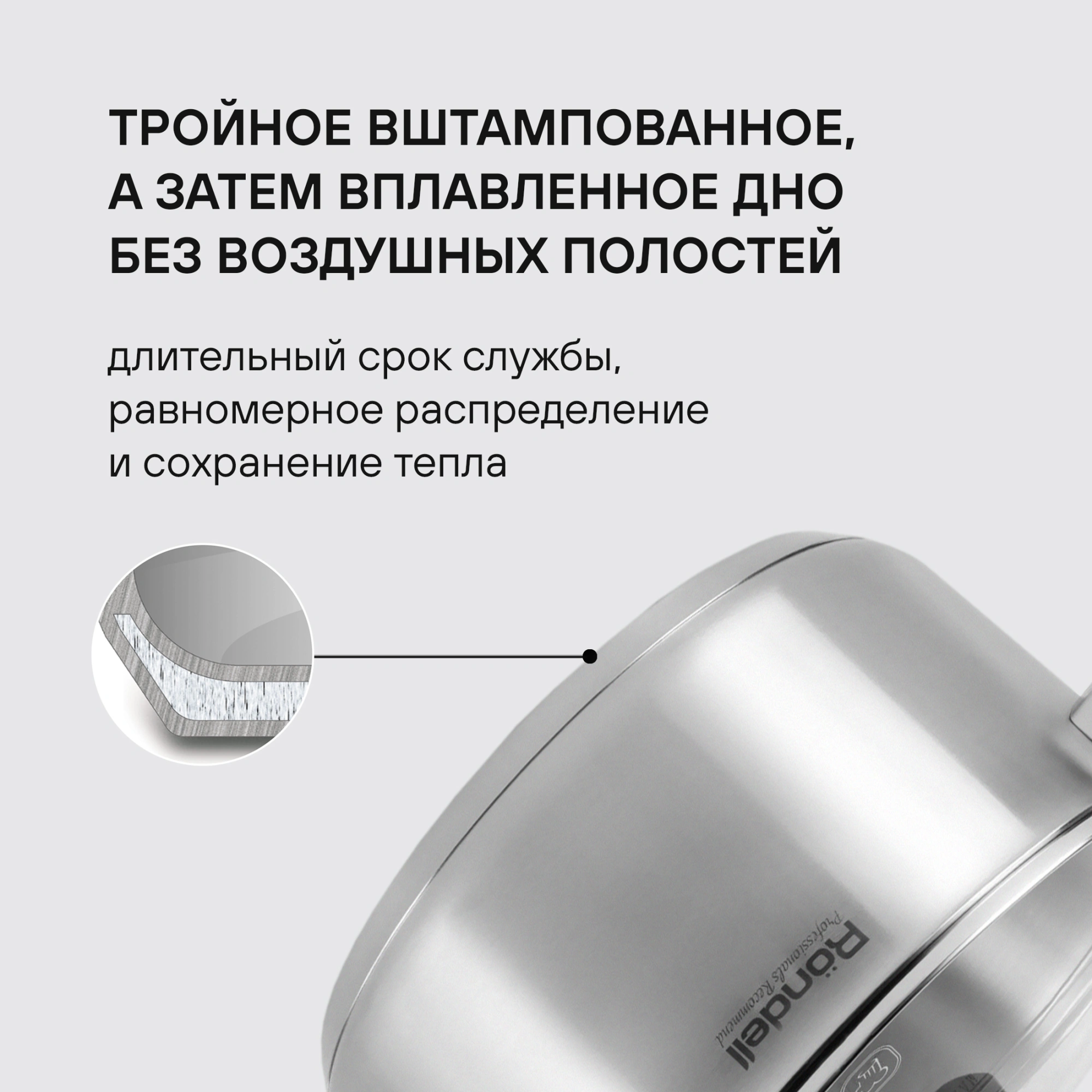 Материал: высококачественная нержавеющая сталь 18/10. Внутреннее покрытие: без покрытия. Толщина стенок: 0,5 мм. Толщина дна: 5,0 мм. Материал крышки: термостойкое стекло. Преимущества: эргономичная ручка с внешним покрытием Soft Touch; клепочное крепление аксессуаров.