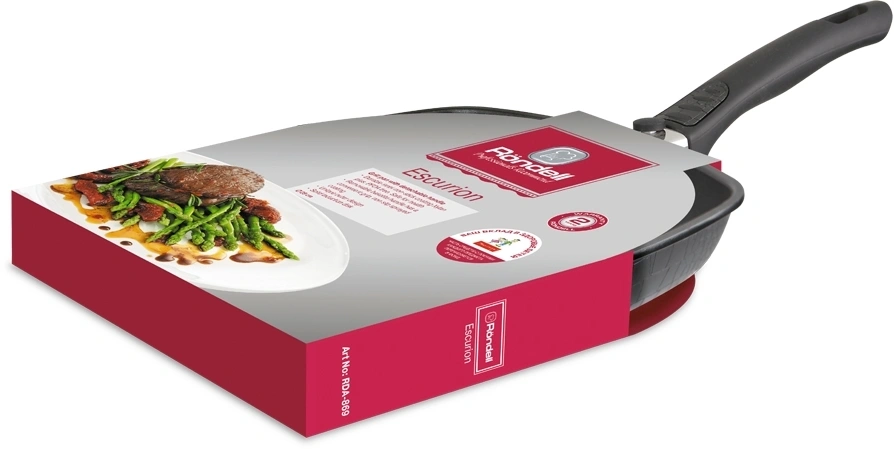 Главной дизайнерской особенностью коллекции Escurion стало использование уникального внешнего глянцевого покрытия под кожу рептилий. Для отличной сопротивляемости к высоким температурам на алюминий наносится внешнее термостойкое покрытие силикон – полиэстер.