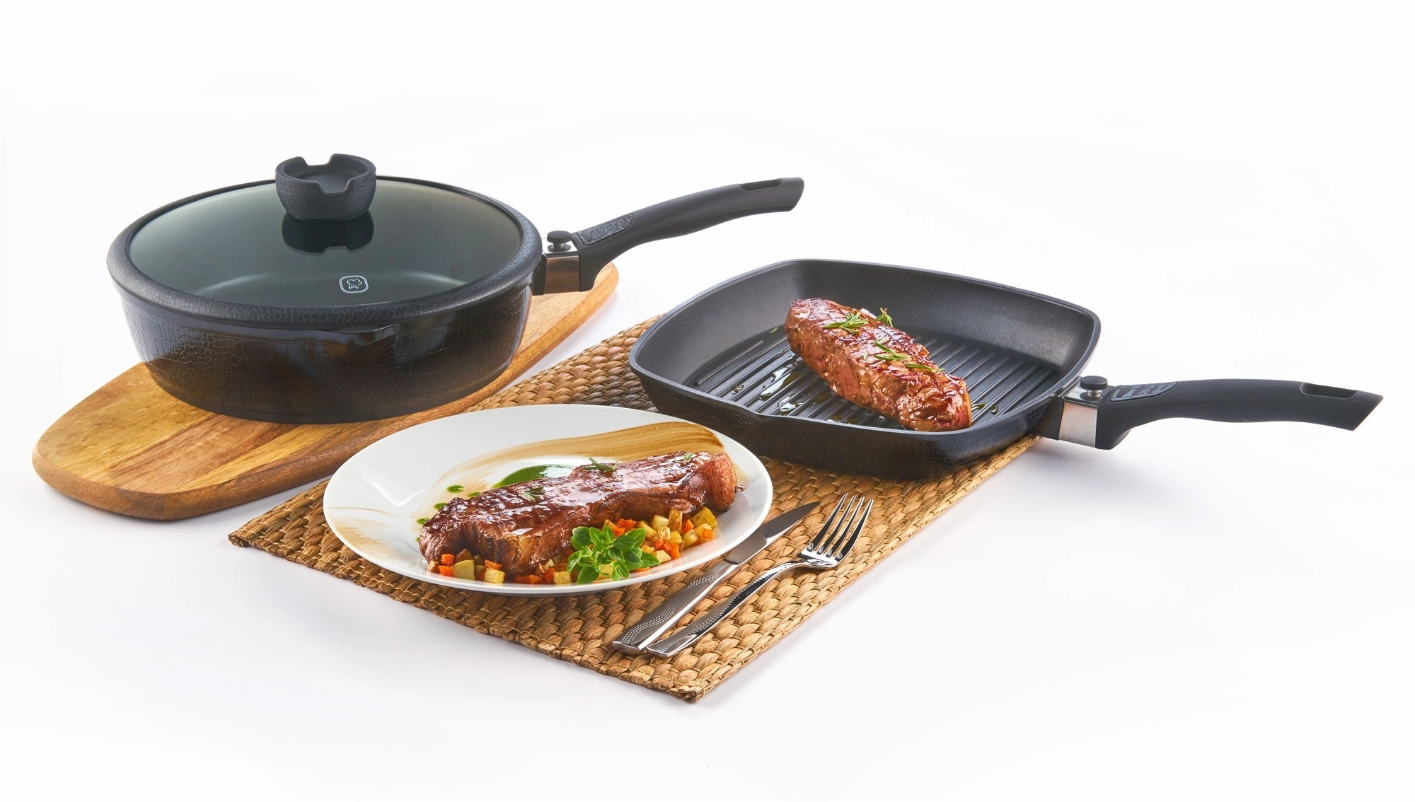 Ценителям бренда обязательно придется по душе удобство хранения и использования посуды Escurion. Если рецептура предполагает приготовление блюда в духовом шкафу, можно с легкостью поместить посуду внутрь духовки с помощью ручки, а затем столь же легко отсоединить её.