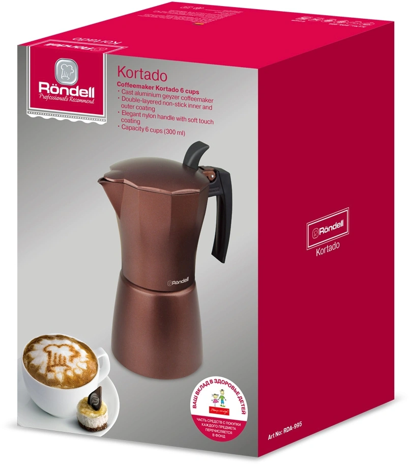 Оттенок кофе кортадо вдохновил наших дизайнеров. Наборы Kortado, сделанные из штампованного алюминия, дарят своим владельцам эстетическое наслаждение шоколадно-бронзовым цветом. Гейзерные кофеварки сделаны с двухслойным внутренним покрытием, из-за которого каждое ваше утро будет добрым много лет!