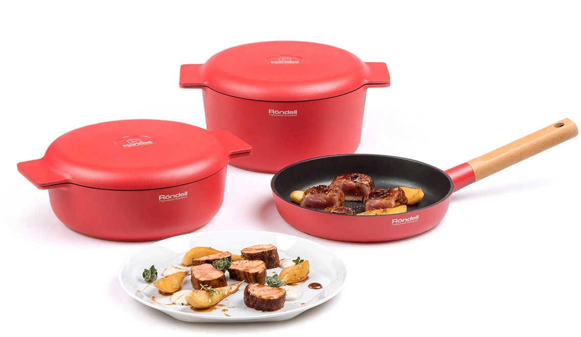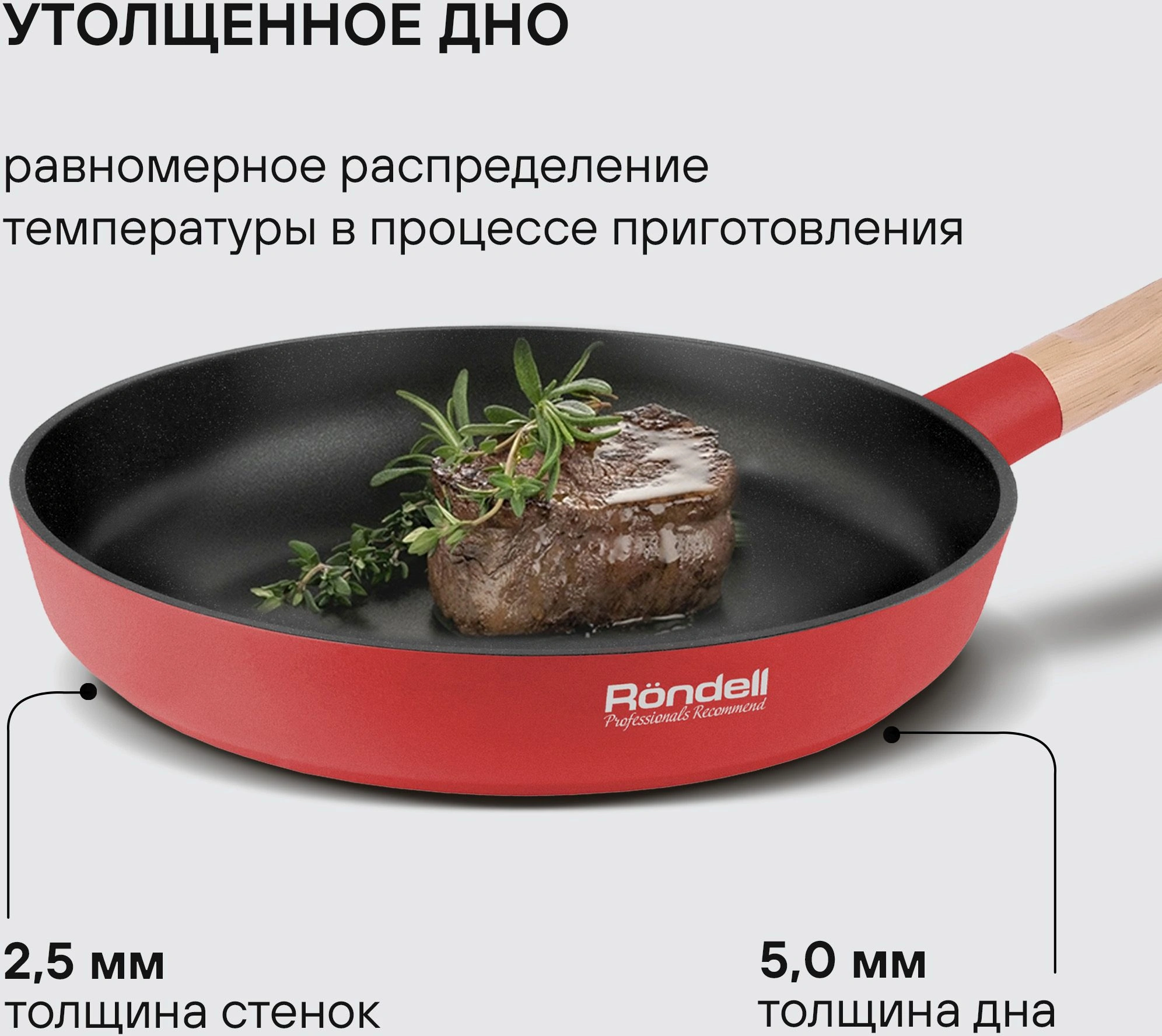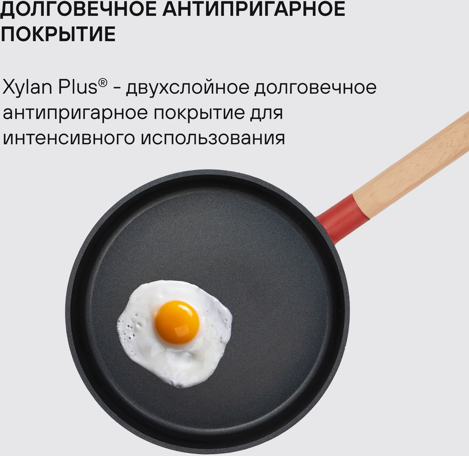 Яркая коллекция посуды Red Edition из утолщенного литого алюминия станет настоящим украшением Вашей кухни благодаря лаконичному дизайну и красному цвету внешнего покрытия. Бакелитовая ручка с покрытием soft touch, стилизованная под дерево придает изделию еще более благородный вид.