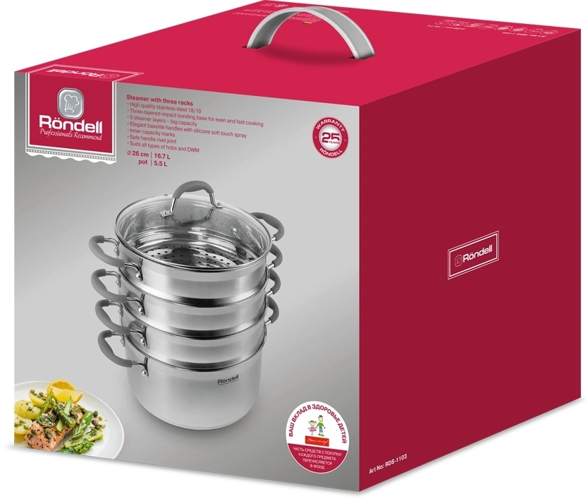 Все, кто стремится питаться правильно, по достоинству оценят пароварки из высококачественной нержавеющей стали. Перфорированные уровни дают возможность готовить на пару сразу несколько видов продуктов, значительно экономя силы и время. Основной ярус можно использовать просто в качестве кастрюли.