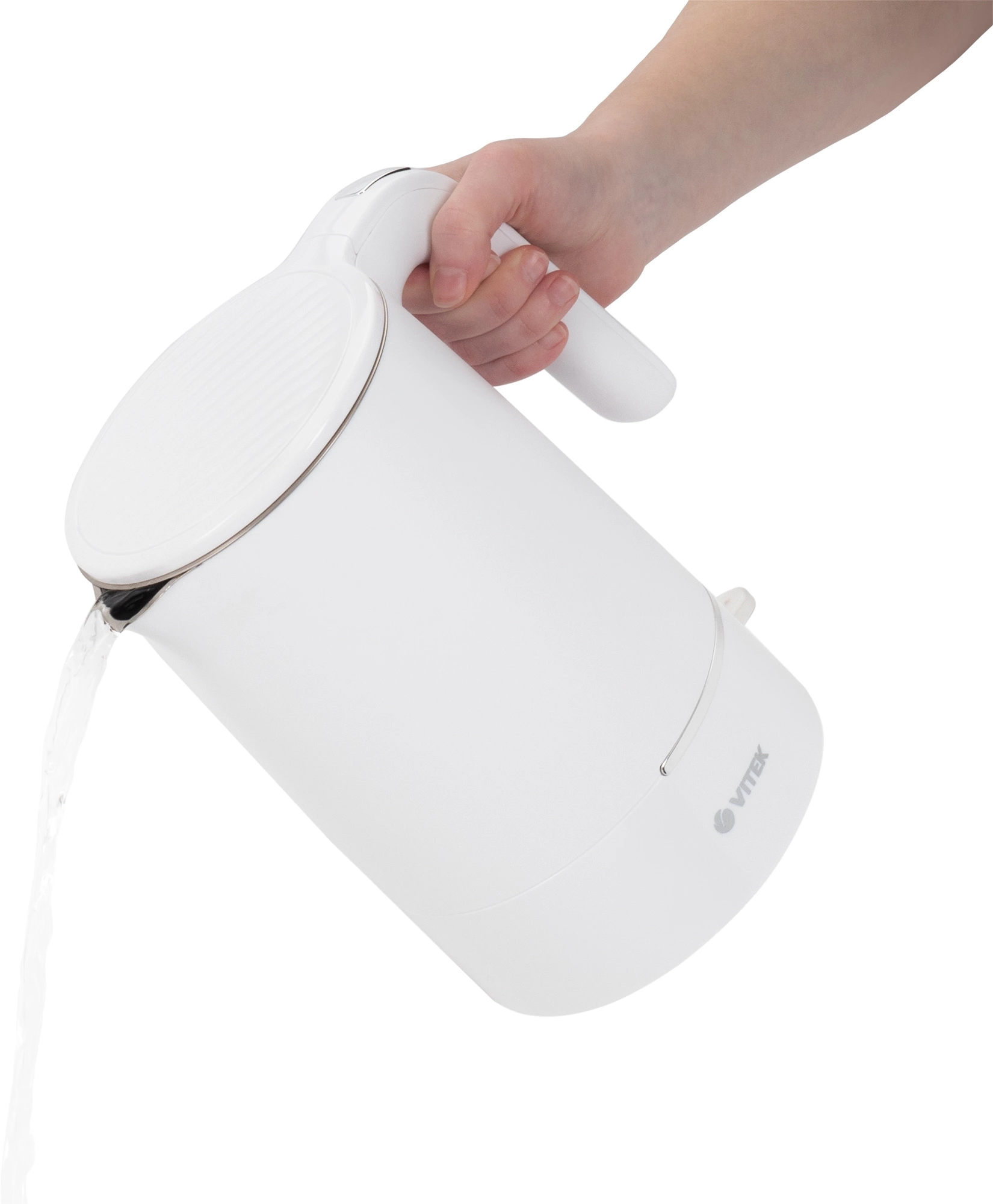 Стильный чайник VITEK VT-1104 объемом 1,5 л идеально впишется в кухонный интерьер любого дизайна. Максимальная мощность устройства — 2200 Вт. Пользоваться чайником не только приятно, но и безопасно, благодаря корпусу Cool touch с двойными стенками (внутри — нержавеющая сталь, снаружи — термостойкий пластик), за счет которых вода в приборе остывает медленнее. Кроме того, такая технология позволяет корпусу не нагреваться сильно. Прибор способен поворачиваться на 360°, а его крышка открывается автоматически. Ухаживать за чайником очень удобно, так как нагревательный элемент встроен в плоское дно и защищен стальной пластиной, накипь с которой бесследно исчезает при простом кипячении воды с лимонной кислотой. Устройство оснащено защитой от перегрева и автоматически отключается при закипании или отсутствии воды. Купите чайник VITEK VT-1104: порадуйте себя и близких!