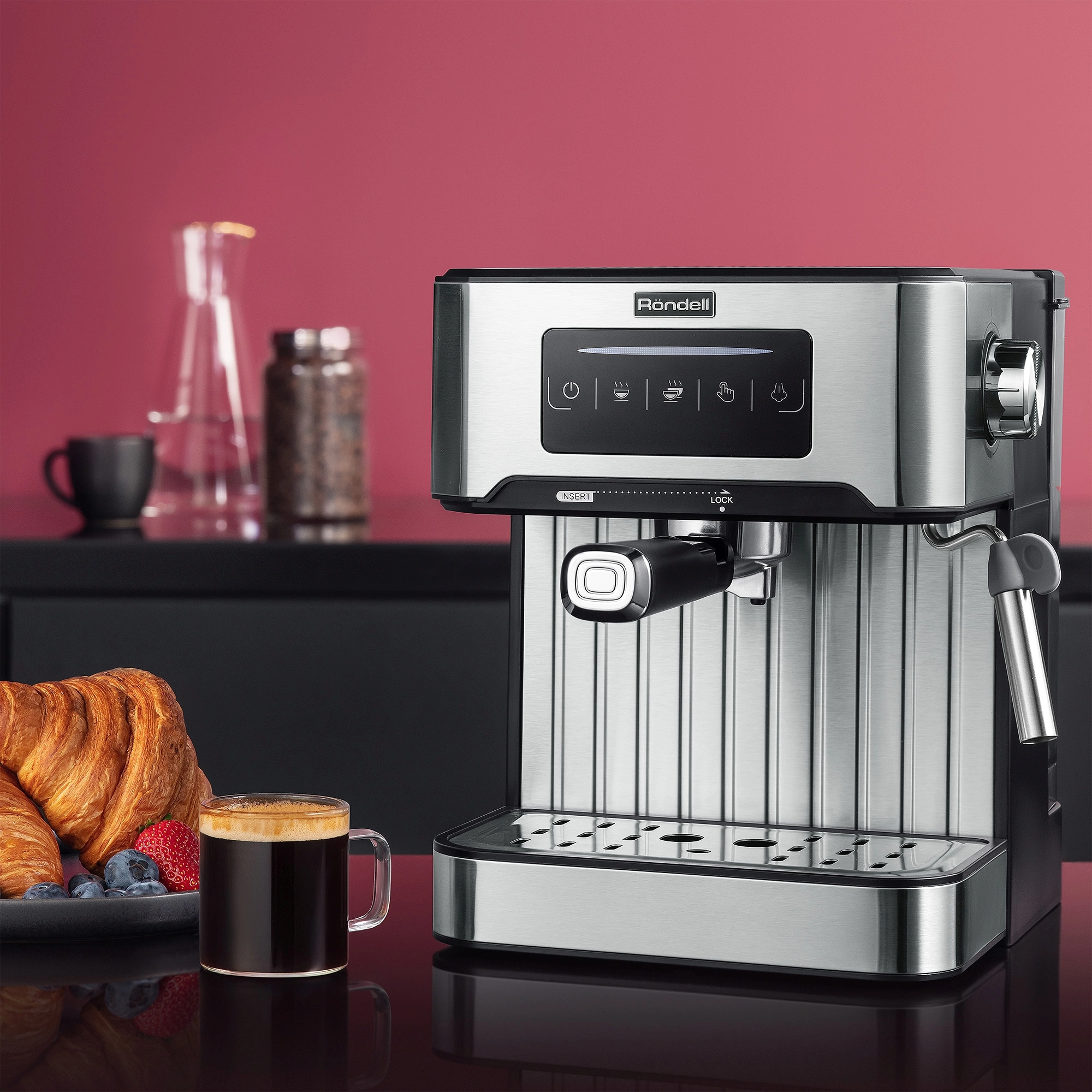 дисплей, капучинатор, панель для подогрева чашек, съемный резервуар для воды