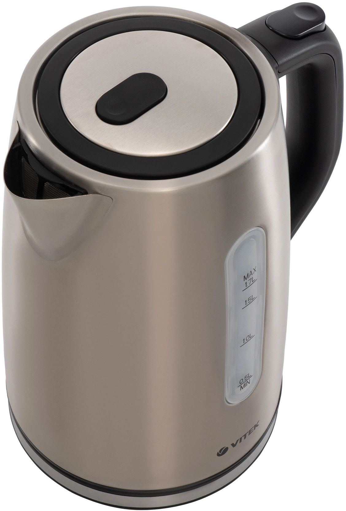 Эргономичный чайник VITEK VT-1144 с корпусом из нержавеющей стали и наглядной шкалой уровня воды станет центром внимания в любом интерьере. Максимальный объем устройства составляет 1,7 л, что дает возможность готовить горячие напитки сразу на всю семью.