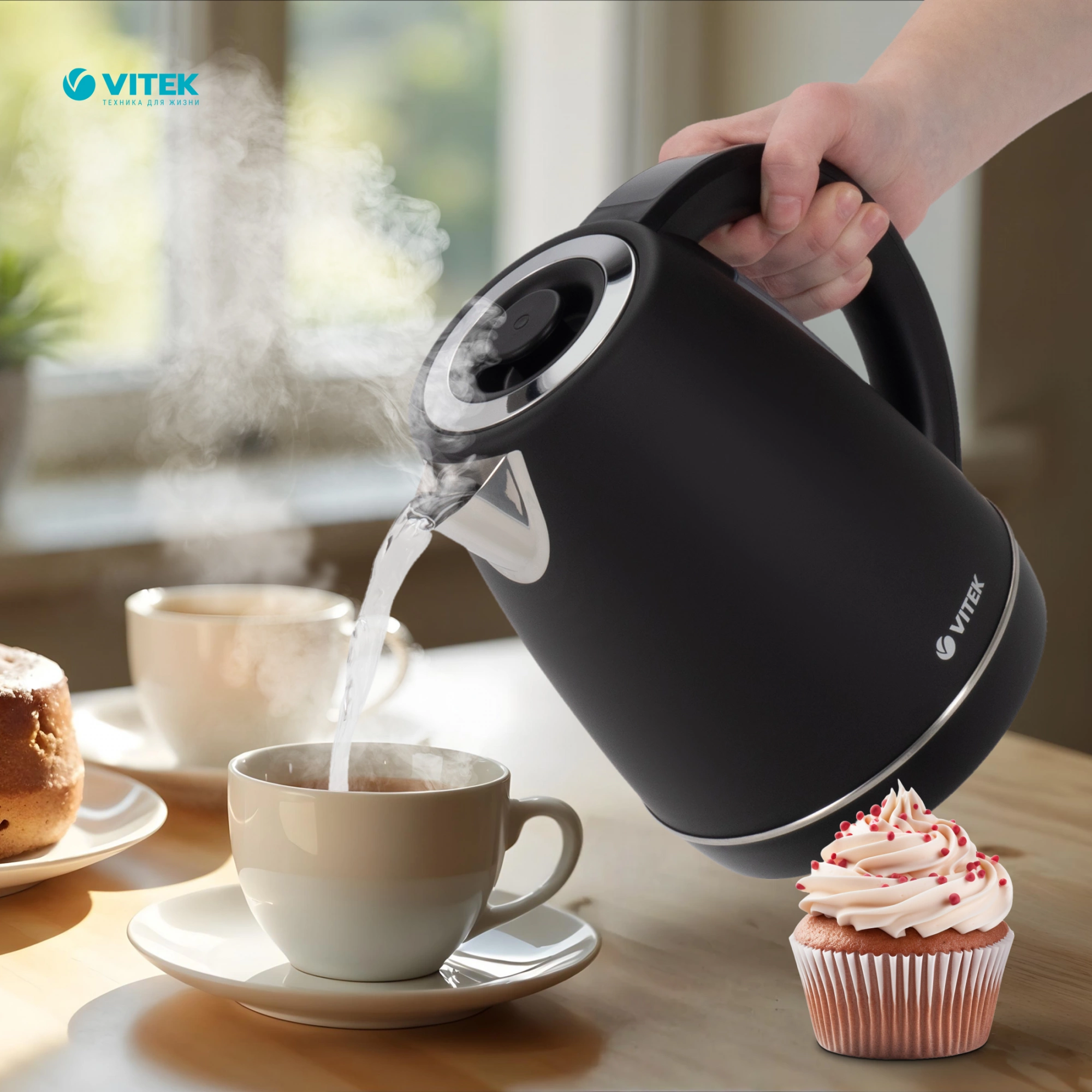 В-третьих, пользоваться чайником очень удобно: он способен поворачиваться на 360°, а его крышка открывается механически. С уходом за прибором тоже все просто: нагревательный элемент встроен в плоское дно и защищен стальной пластиной, поэтому очистить его от накипи не составит труда. Устройство оснащено защитой от перегрева и автоматически отключается при закипании или отсутствии воды. Следить за ее уровнем поможет специальная внешняя шкала, расположенная под ручкой чайника. Съемный фильтр, находящийся внутри носика прибора, предотвратит попадание накипи в напитки. Купить чайник VITEK VT-1161 можно для своей семьи или в подарок!