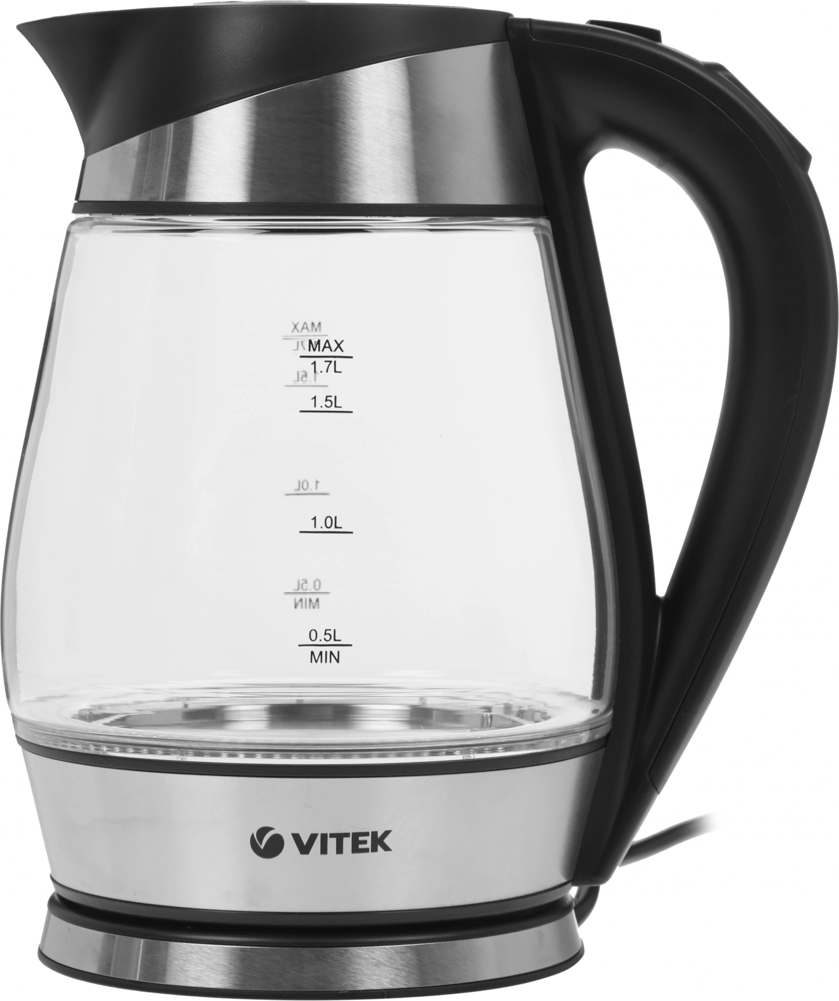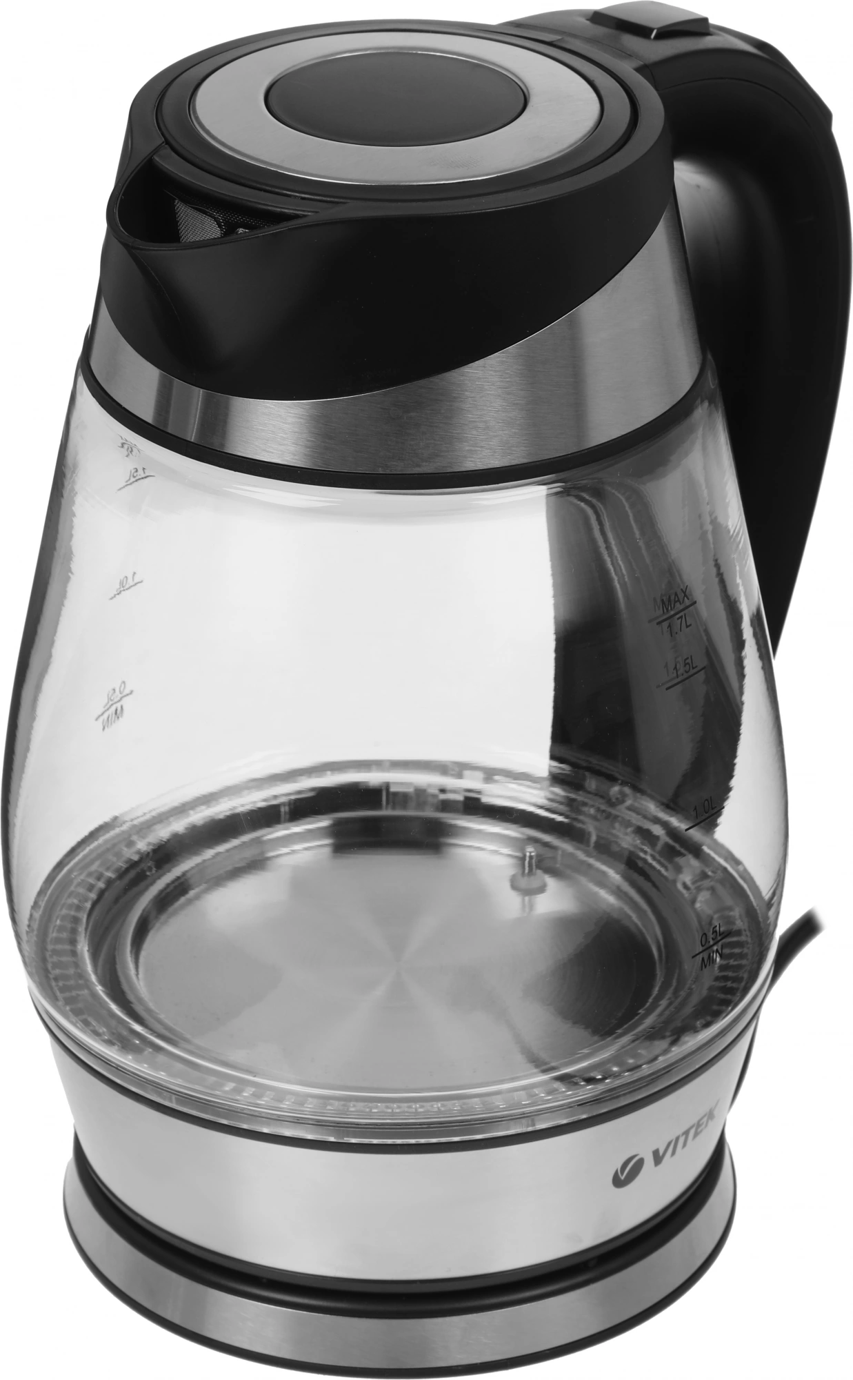 Кипятить воду, одновременно получая эстетическое удовольствие, позволит чайник VITEK VT-1177 объемом 1,7 л с максимальной мощностью 2200 Вт. Его корпус из экологического термостойкого стекла, декорированный стальными элементами, имеет красивую подсветку, меняющуюся в процессе нагревания. Вы можете выбрать один из пяти режимов подогрева воды (50 °С, 70 °С, 80 °С, 90 °С, 100°С), идеально подходящих для заваривания разных сортов чая, а также воспользоваться функцией поддержания температуры. Благодаря тому, что нагревательный элемент встроен в плоское дно прибора, его легко очищать от накипи. Пользоваться чайником очень удобно: он автоматически открывается легким нажатием на кнопку, расположенную на ручке.