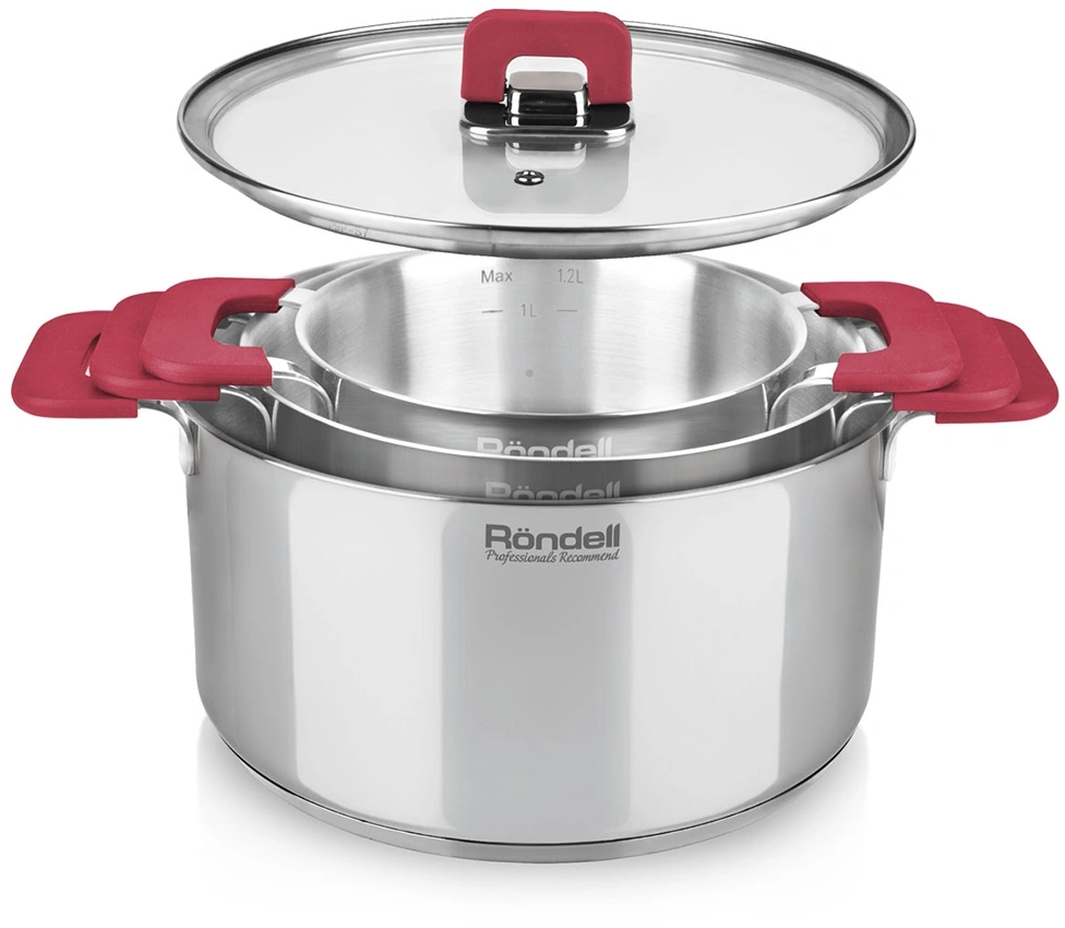 Три кастрюли 16 см (1,4 л), 20 см (3 л), 24 см (5,6 л) со стеклянными крышками
