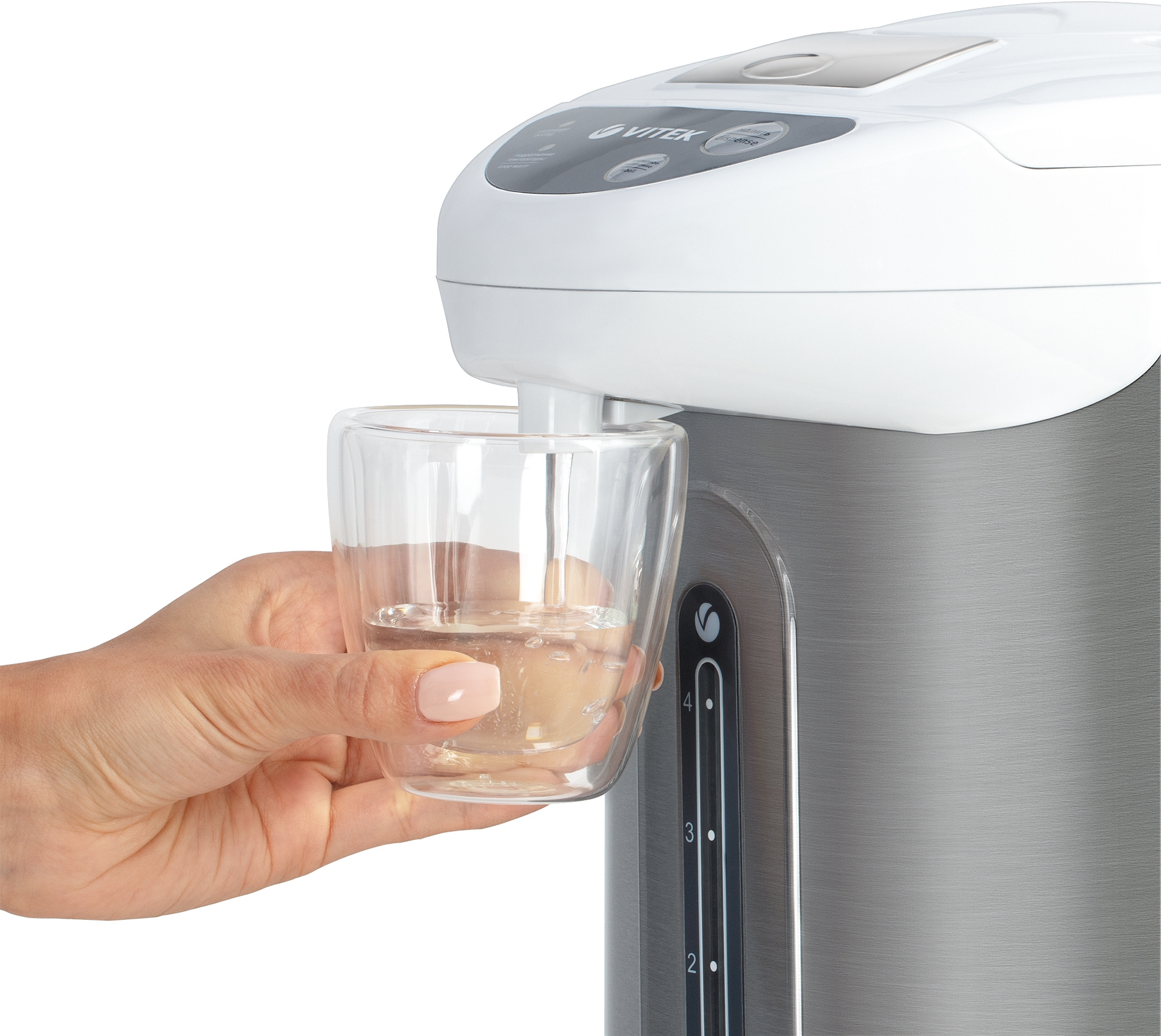 С четырехлитровым термопотом VITEK VT-1196 ваши близкие, коллеги или гости без хлопот насладятся чаем или кофе. Стильный прибор безопасен и прост в эксплуатации, снабжен индикатором уровня воды. Подача воды осуществляется вручную, автоматически или при нажатии чашкой на клапан.