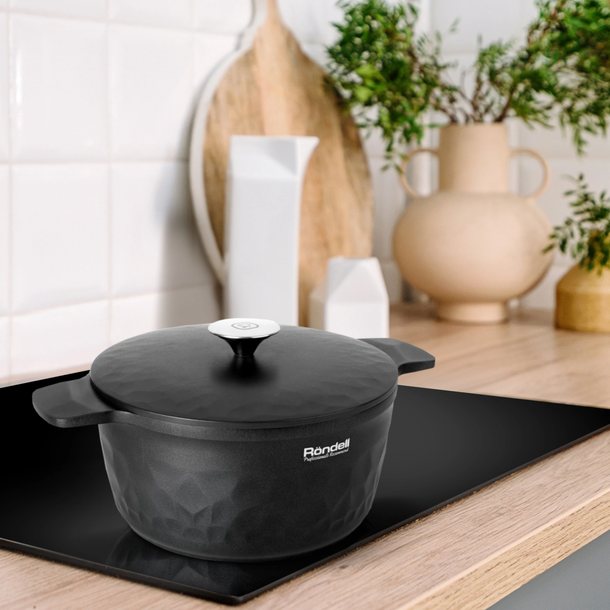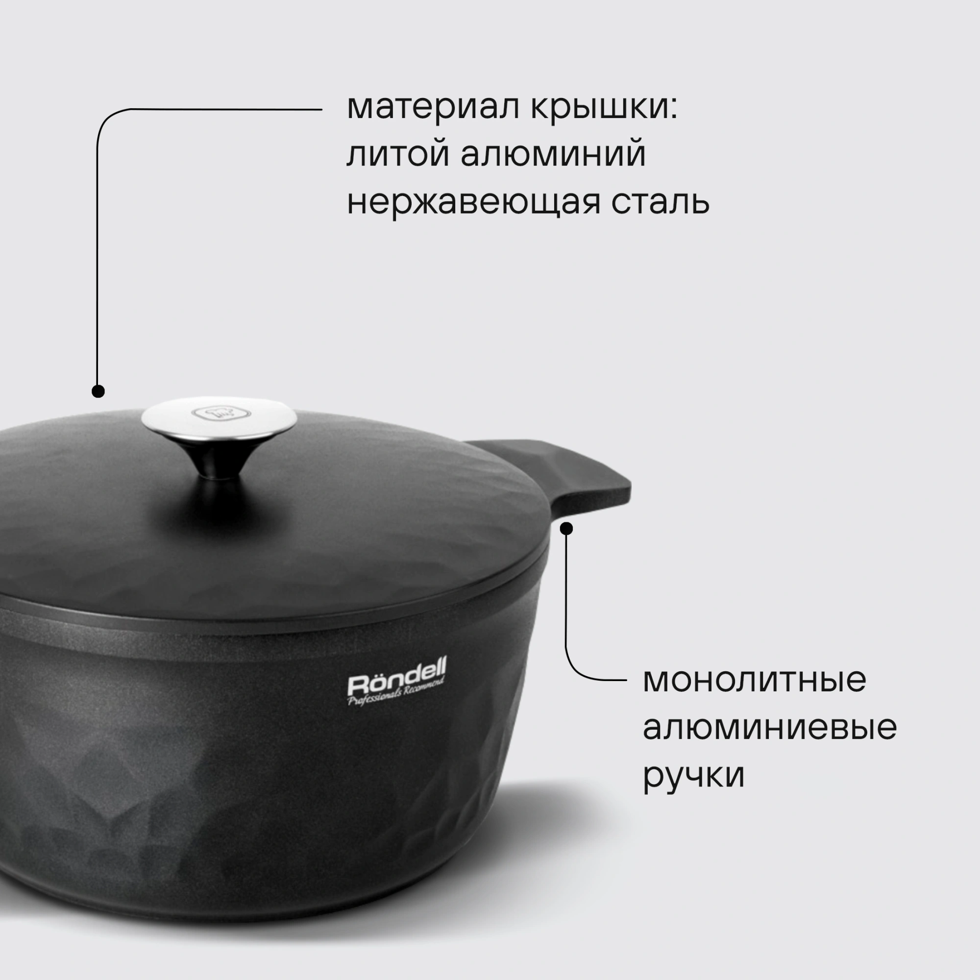 Материал: литой алюминий. Материал крышки: нержавеющая сталь; литой алюминий. Аксессуары: монолитные алюминиевые ручки.