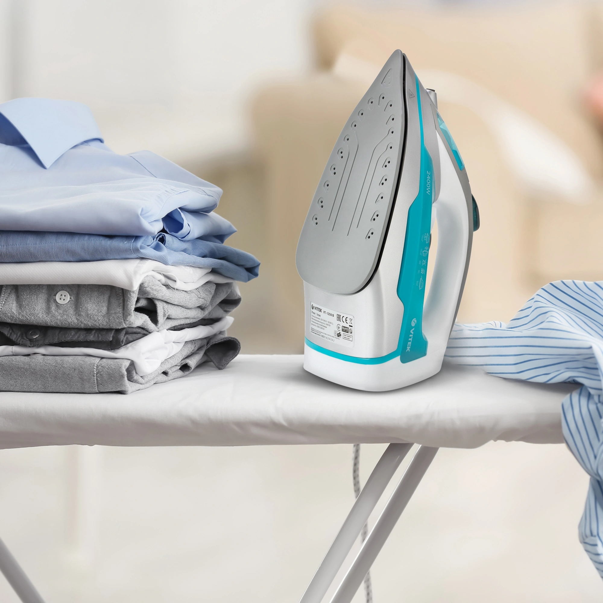 Утюг VITEK VT-1258 отличается ярким дизайном и функциональностью. Мощность 2400 Вт позволит прибору быстро нагреться до нужной температуры и эффективно выполнять свою работу. Устройство оснащено антипригарной подошвой, которая отлично скользит по любой ткани.