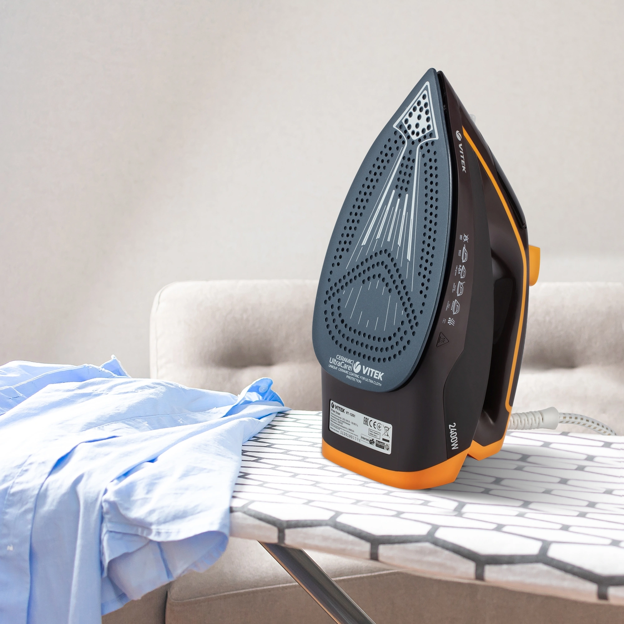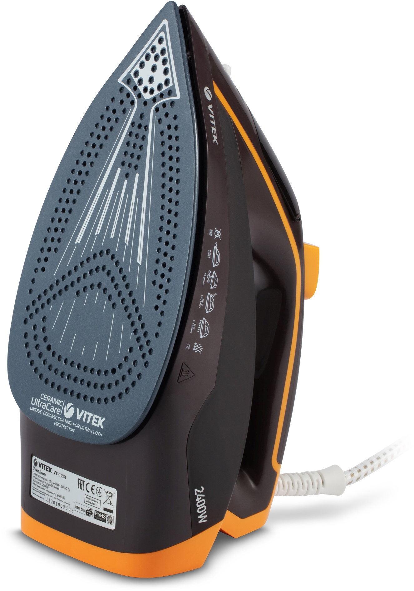 Идеально отгладить брюки, платье или тонкую блузку поможет утюг VITEK VT-1261 с максимальной мощностью 2400 Вт. Он обеспечит дополнительную безопасность, так как автоматически отключится, если оставить его без движения. Подошва прибора имеет двойное керамическое покрытие UniCera, устойчивое к царапинам и сколам, которое обеспечивает невероятно легкое скольжение по любому виду ткани. Утюг оснащен различными режимами отпаривания, в том числе вертикального (паровой удар — до 140 г/мин), Объем резервуара для воды — 300 мл. Особому комфорту в использовании прибора способствует встроенная система защиты от накипи, а также система самоочистки и функция «Антикапля». Предпочитаете сухое глажение? Никаких проблем: выбирайте именно этот режим! В случае необходимости, для более эффективного глажения, вы можете воспользоваться функцией разбрызгивания воды.