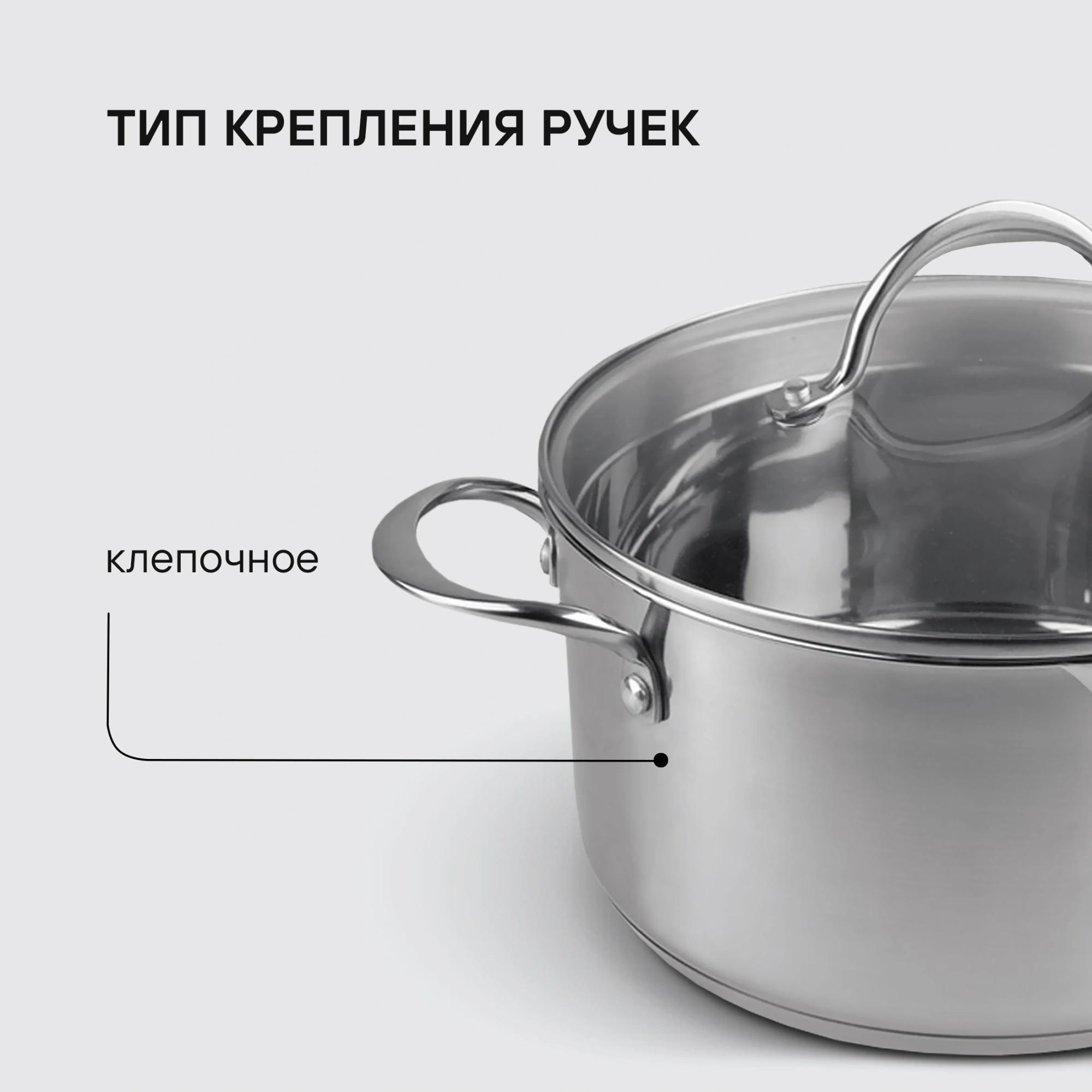 Три кастрюли 18 см (1,9 л), 20 см (2,6 л), 24 см (4,7 л) со стеклянными крышками