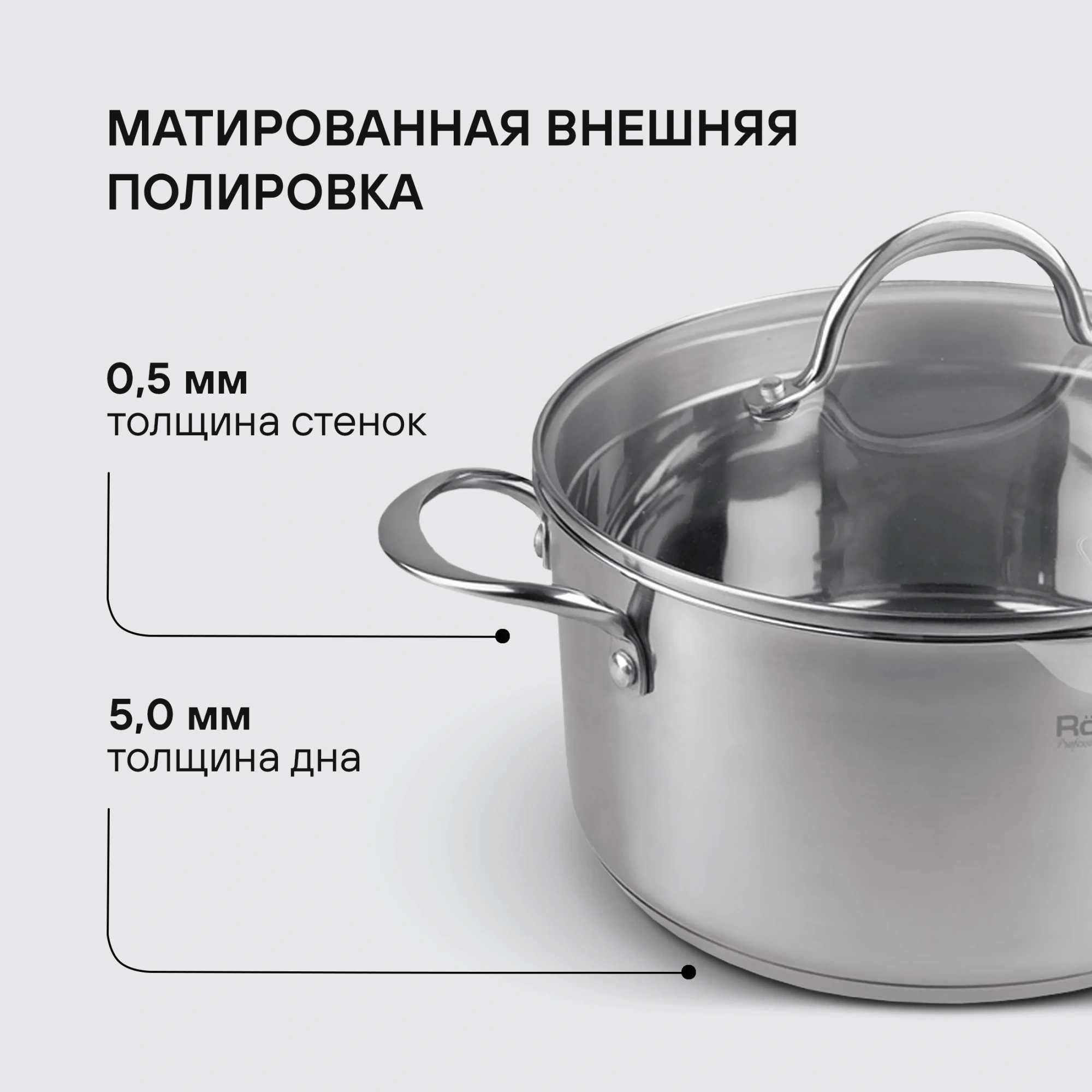 Ничего лишнего, никаких контрастов и резких линий! Строгий стальной цвет кастрюль и ковша, приглушенный благородной сатинированной полировкой, гармонично вписывается в интерьер кухни любого дизайна. Продукты прогреваются максимально равномерно, поэтому блюда получаются просто идеальными.