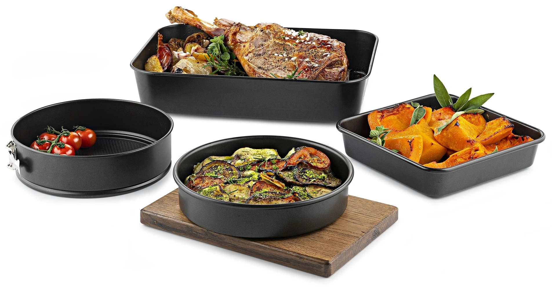Тем, кто любит баловать близких выпечкой, придутся по душе формы из углеродистой стали с рельефным дном — для более удобного извлечения готовых блюд. Преимущество коллекции: Рельефное дно в виде алмазной сетки (для лучшей циркуляции воздуха и легкого извлечения готового изделия)