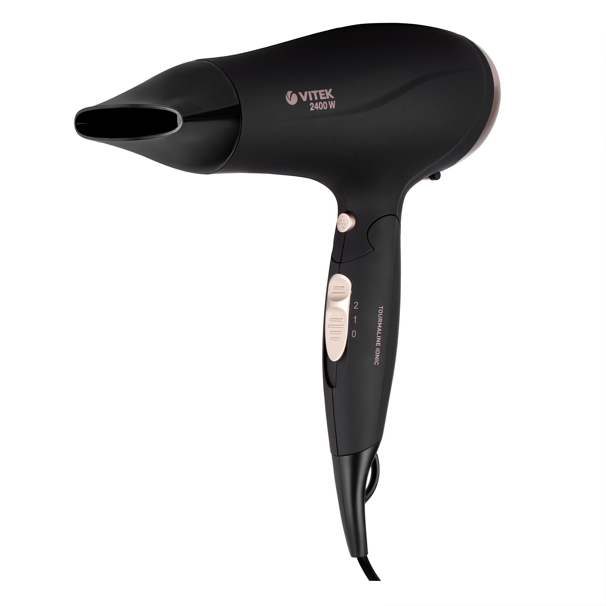 Чтобы быстро высушить волосы и уложить их в прическу, воспользуйтесь феном VITEK VT-1330. Максимальная мощность прибора — 2400 Вт. Решетка фена имеет инновационное покрытие Tourmaline Ionic, образующее при нагревании отрицательные ионы, которые снимают статическое электричество. В результате чешуйки волос запечатываются, и они не пересушиваются. Фен имеет два температурных режима и две скорости воздушного потока. Направляя его через концентратор, вы сможете воздействовать на конкретные пряди, создавая задуманную прическу. Закрепить ее поможет функция подачи холодного воздуха. Пользоваться феном очень удобно, благодаря вращающемуся шнуру длиной 1,8 м. Чтобы прибор служил максимально долго, в нем предусмотрена система защиты от перегрева. Фен не требует особенного ухода, однако фильтр необходимо периодически снимать и промывать водой. После использования прибор можно подвесить в любом месте за специальную петельку или же сложить ручку к основанию и убрать устройство на полку. Купите фен VITEK VT-1330: получайте удовольствие от повседневного ухода за волосами!