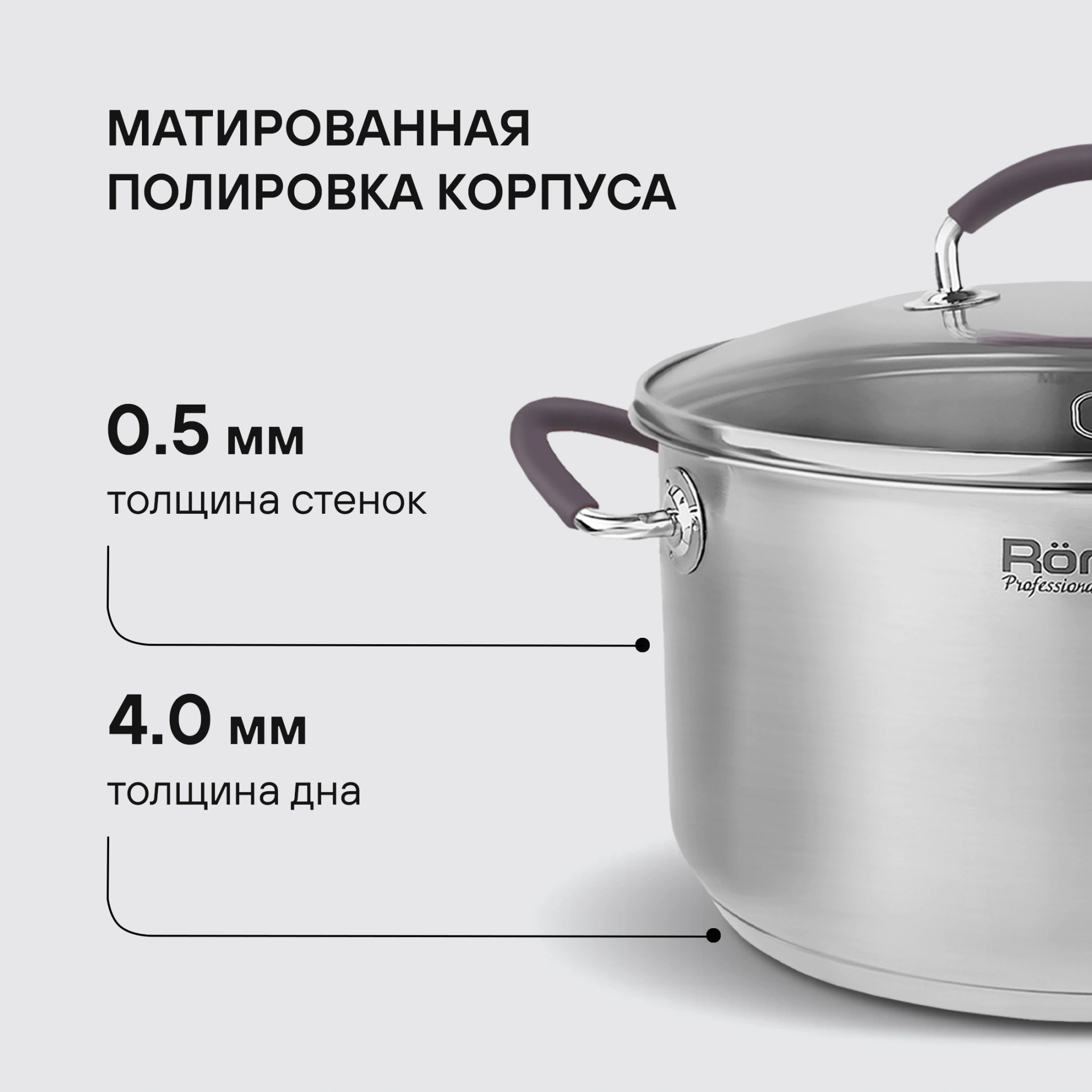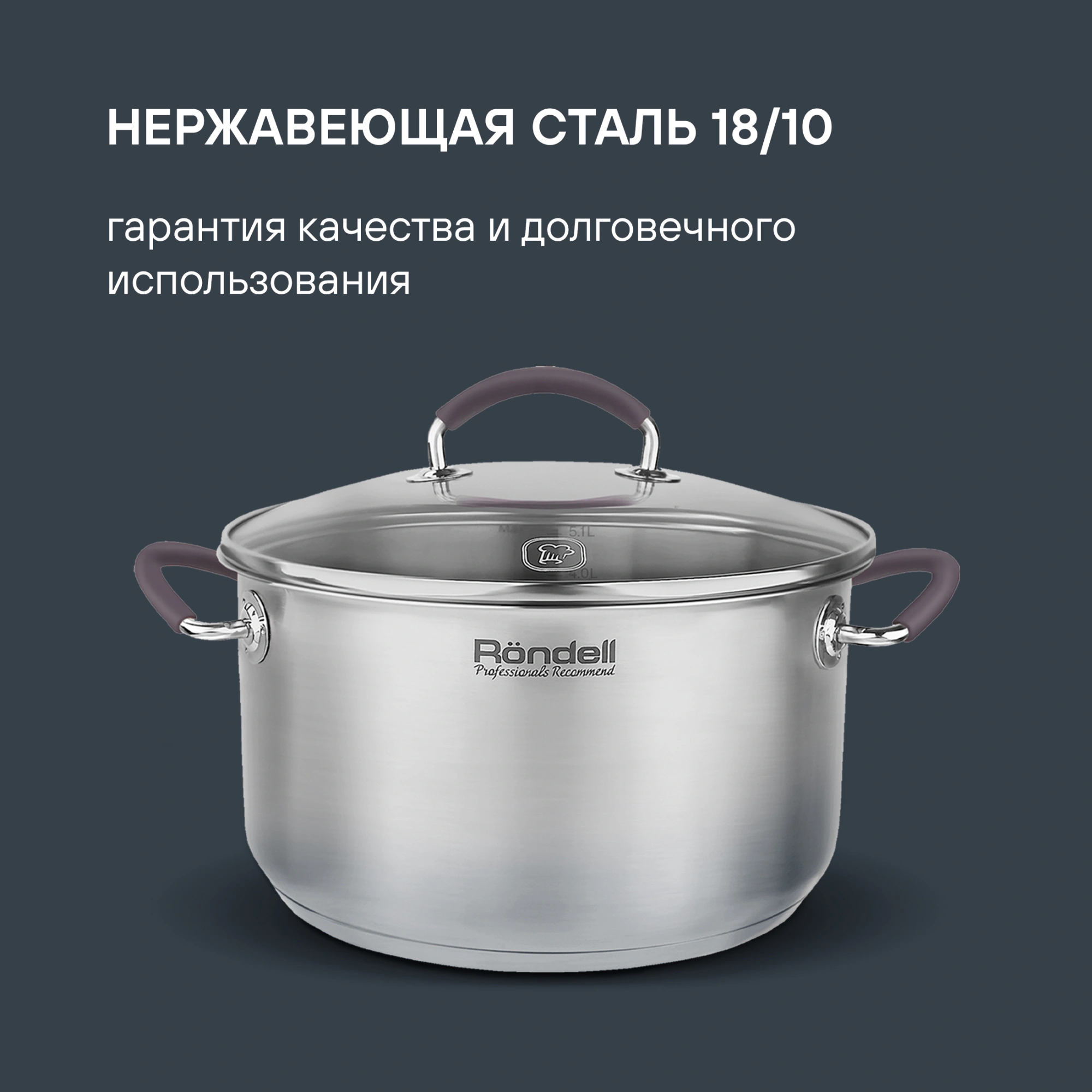 Материал: высококачественная нержавеющая сталь 18/10. Технология: тройное вштампованное, а затем вплавленное дно без воздушных полостей. Материал крышки: термостойкое стекло. Аксессуары: удобные комбинированные: нержавеющая сталь и силикон. Преимущества: эргономичная форма ручек.