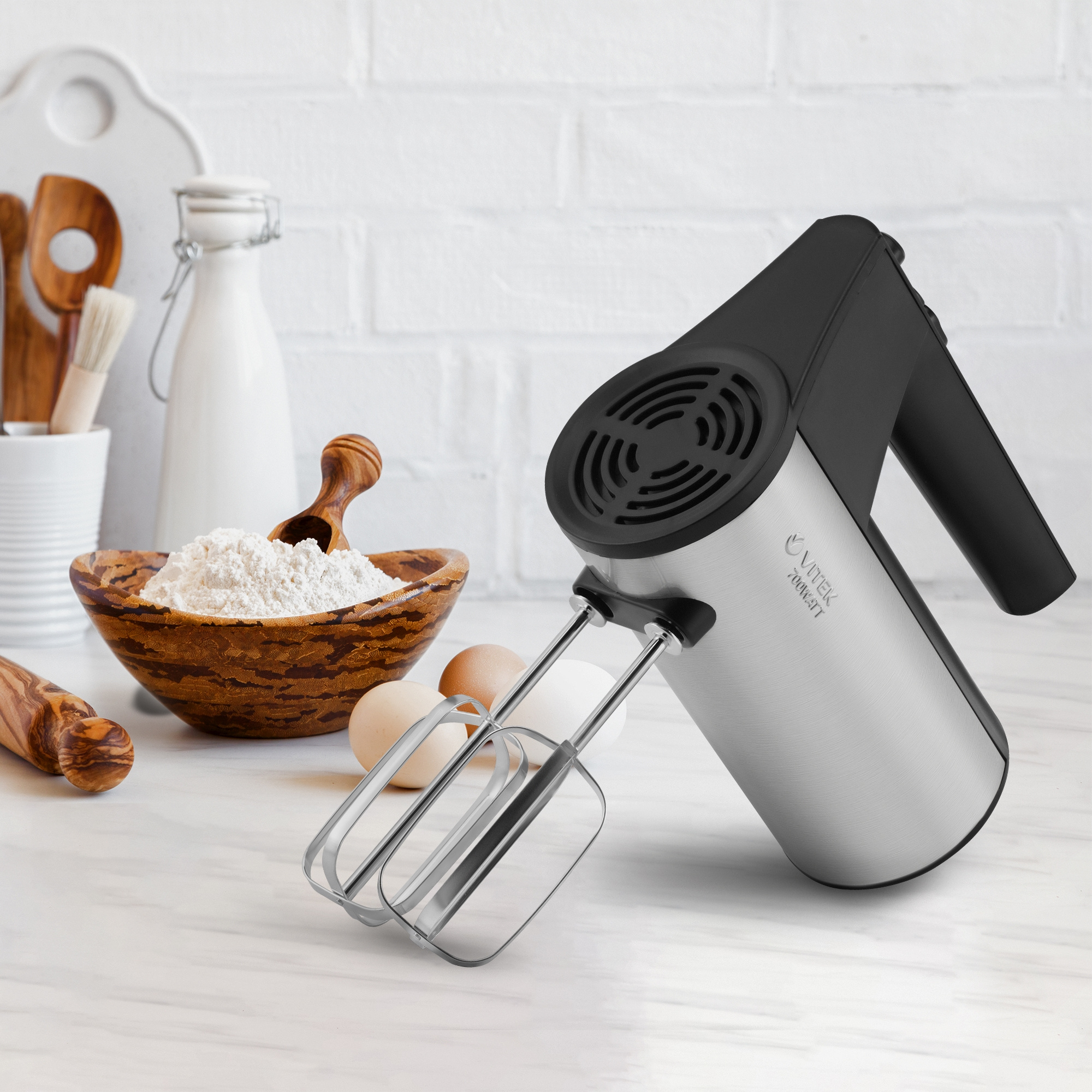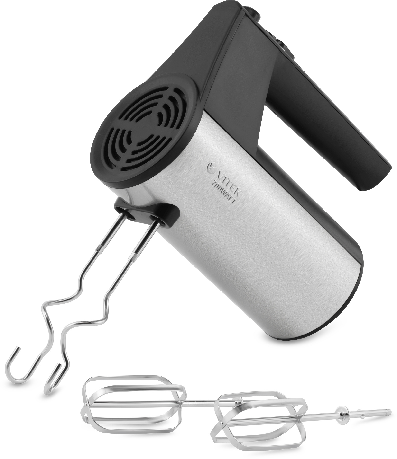Если вы любите готовить торты, пирожные и другие десерты, обратите внимание на миксер VITEK VT-1424 с максимальной мощностью 700 Вт. Прибор оснащен двумя стальными венчиками для взбивания и двумя стальными крюками для замешивания теста: насадки легко отделяются от корпуса нажатием специальной кнопки. Особому комфорту в эксплуатации миксера способствуют 5 скоростных режимов и режим «Турбо», который улучшает эффективность работы устройства для достижения идеального результата.