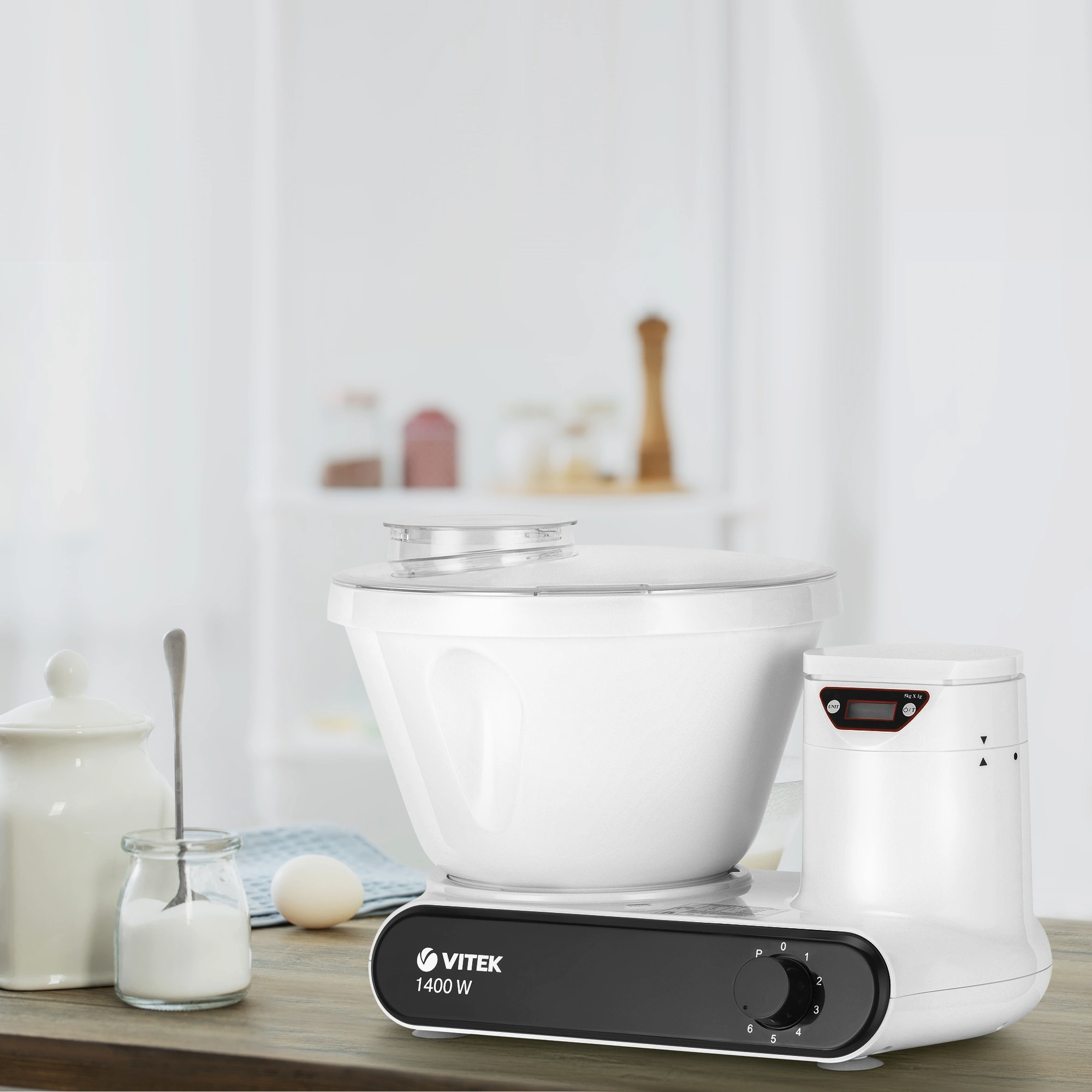 Любите готовить, делаете это часто и с удовольствием? Тогда кухонная машина VITEK VT-1442, имеющая шесть скоростных режимов создана специально для вас. Умное устройство поможет вам и вымесить тесто, и взбить крем или мусс. Кстати, если потребуется добавить ингредиенты в процессе работы, просто воспользуйтесь специальным окном в прозрачной крышке чаши. Кухонная машина оснащена кухонными весами, которые, по желанию, вы можете снять и использовать отдельно.