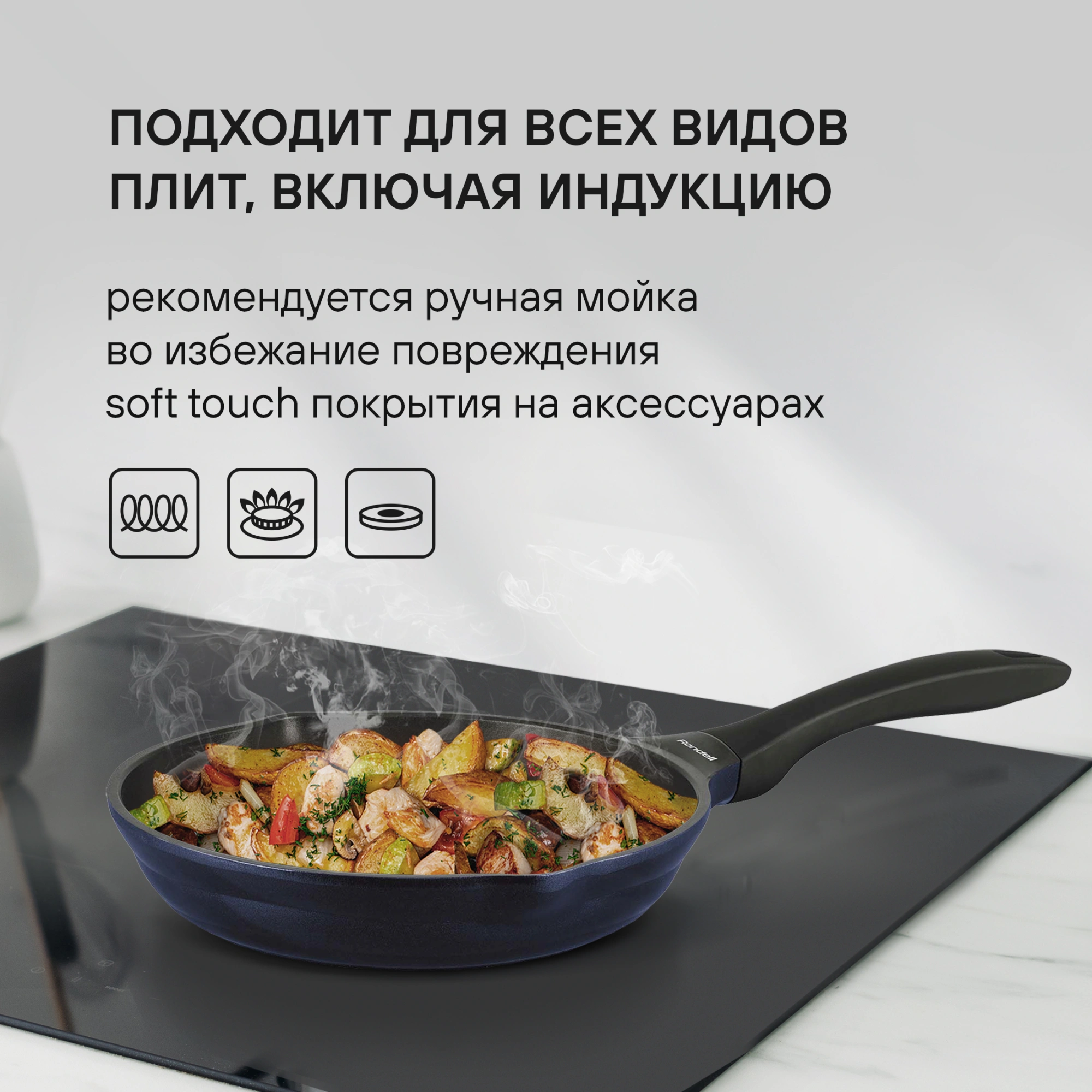 Аксессуары: из бакелита, с покрытием Soft Touch. Преимущества: специальное внешнее термостойкое покрытие для легкого ухода; Eclipse® HB – усиленное трехслойное антипригарное покрытие для интенсивного использования. Упаковка: картонный рукав.