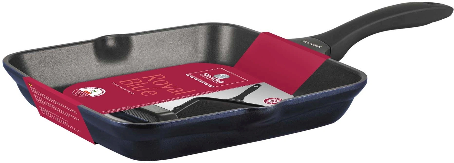 Коллекция Royal Blue: изготовлена из литого алюминия, известного своей высокой теплопроводностью. Благодаря этому свойству посуда Royal Blue особенно рекомендуется для длительного томления блюд. Внимания заслуживает также внутреннее трехслойное антипригарное покрытие Eclipse HB.