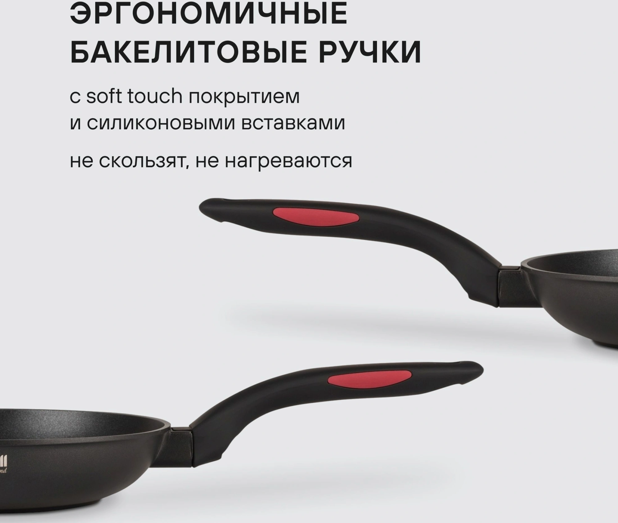 Аксессуары: эргономичные бакелитовые ручки с soft touch покрытием и силиконовыми вставками, препятствующими скольжению. Преимущества: специальное внешнее термостойкое покрытие для легкого ухода; Xylan® Plus – двухслойное, долговечное антипригарное покрытие для интенсивного использования.