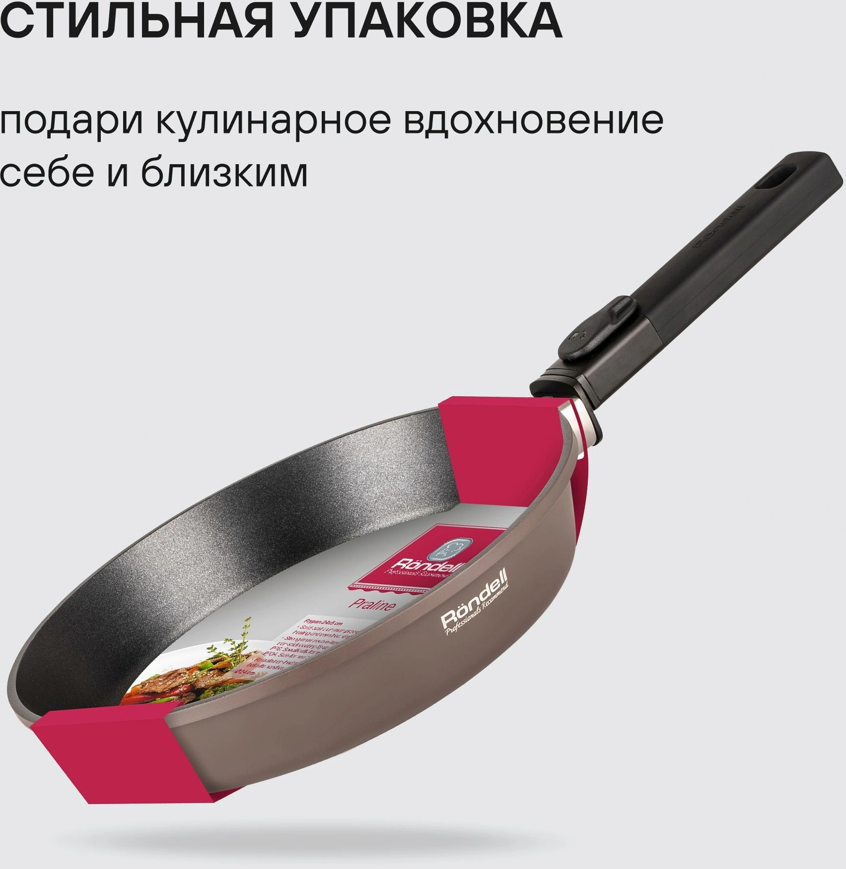 Сковорода коллекции Praline обеспечивает эффективное приготовление пищи. Изготовлена из прочного литого алюминия с высокой степенью теплопроводности. Внутреннее покрытие Xylan Plus не выделяет вредных веществ, предотвращает пригорание продуктов и легко очищается от загрязнений.
