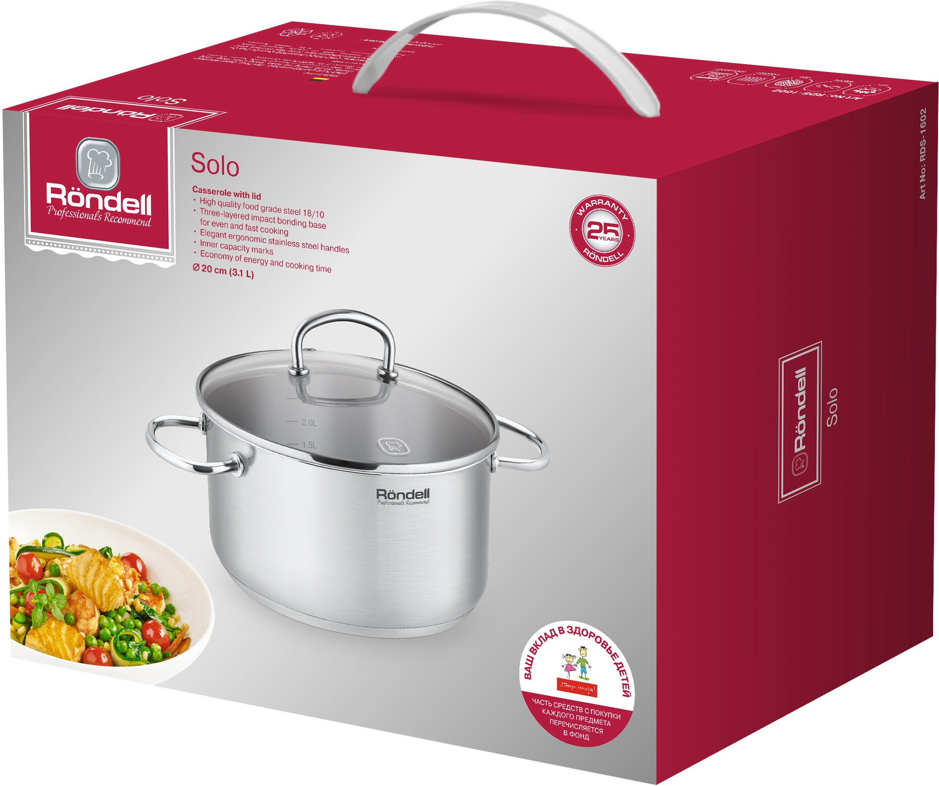 Изготовленные из высококачественной нержавеющей стали 18/10 кастрюли Solo, отличаются надежностью и особой долговечностью. Блюда, приготовленные в ней, получаются необыкновенно вкусными и ароматными. Все предметы посуды оснащены крышками из термостойкого стекла с отверстиями для выхода пара.