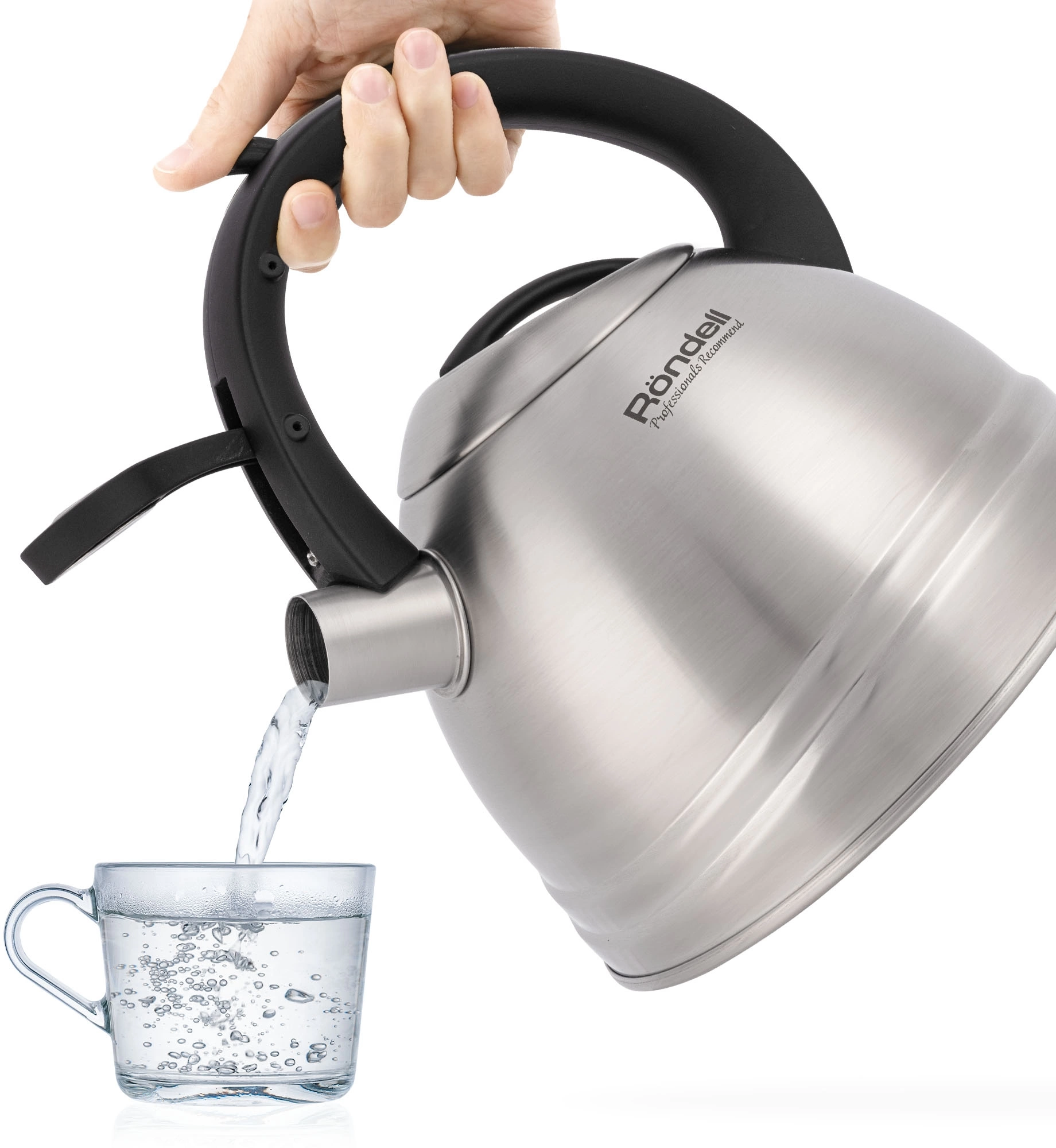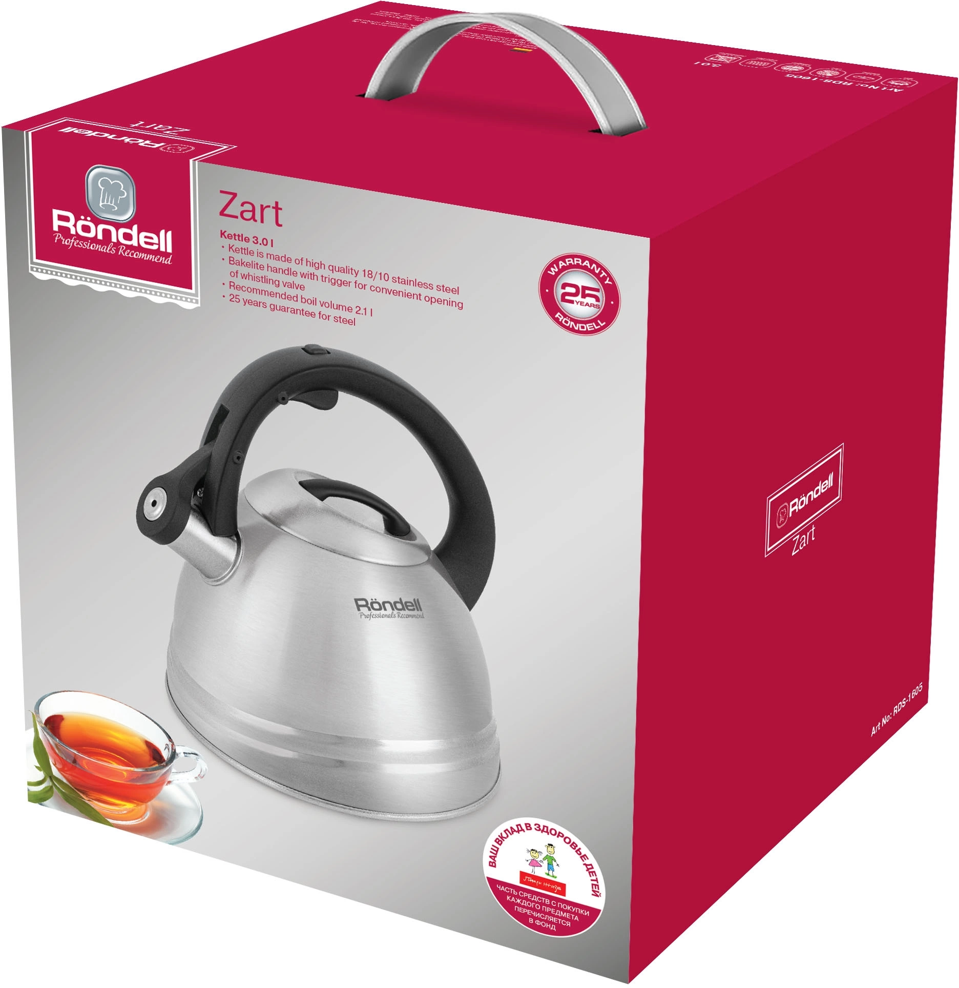 Изысканная сатинированная полировка корпуса. Аксессуары: из бакелита с покрытием Soft Touch. Преимущества: капсулированное дно. Возможность налива воды одной рукой. Бакелитовый свисток со стальной сердцевиной и устройством для открывания носика на ручке. Упаковка: подарочная