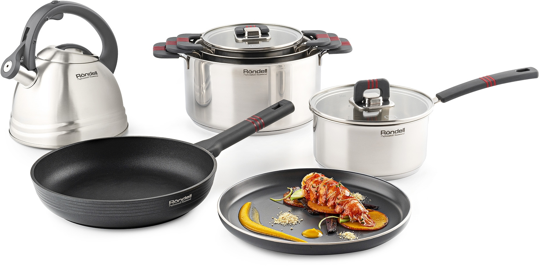 Технология: тройное вштампованное, а затем вплавленное дно без воздушных полостей. Преимущества: силиконовые вставки на ручках против скольжения. Складная ручка на плоской крышке для экономии пространства при хранении и размещении в ПММ. Отверстие для выпуска пара.