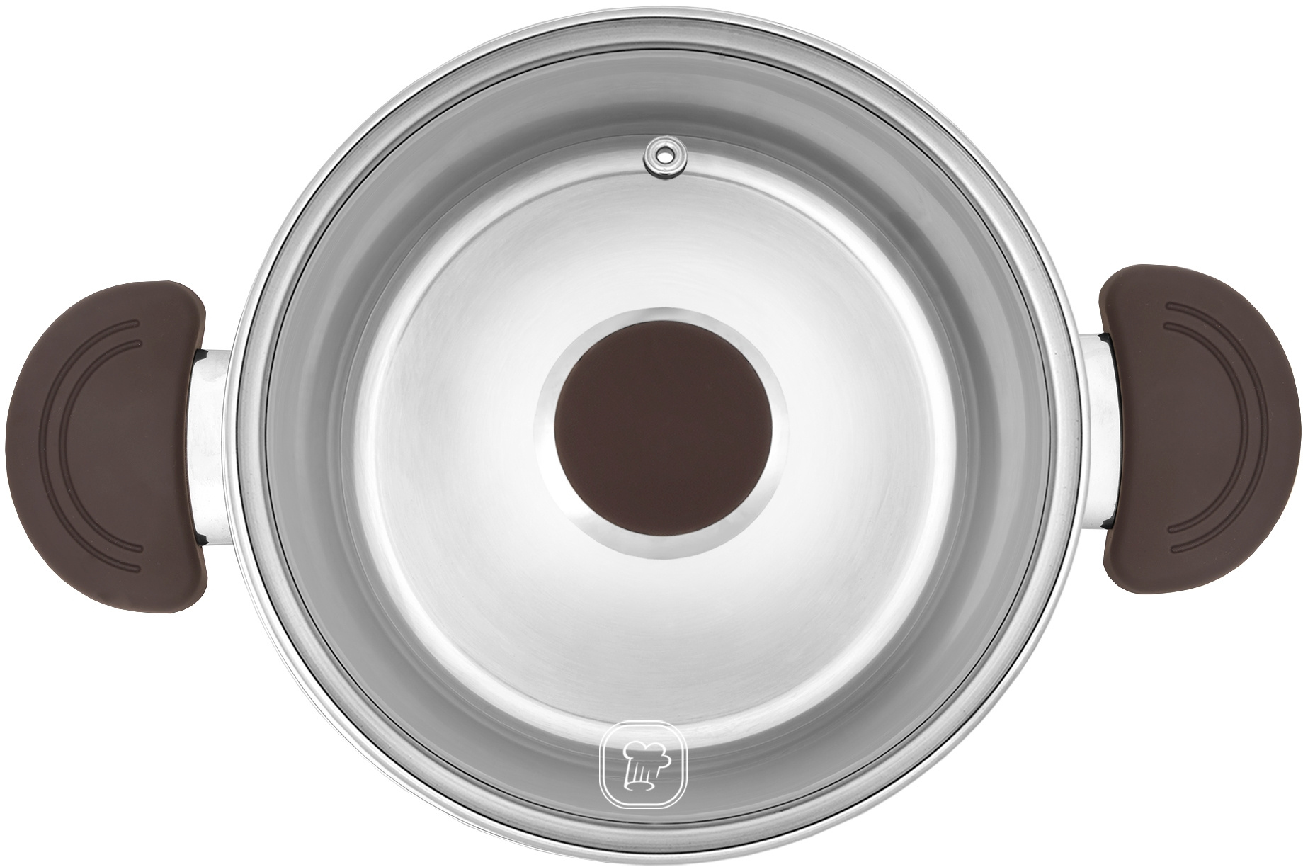 Материал: высококачественная нержавеющая сталь 18/10. Технология: тройное вштампованное, а затем вплавленное дно без воздушных полостей. Материал крышки: термостойкое стекло. Аксессуары: из бакелита с покрытием Soft Touch. Преимущества: эргономичная ручка с внешним покрытием Soft Touch.