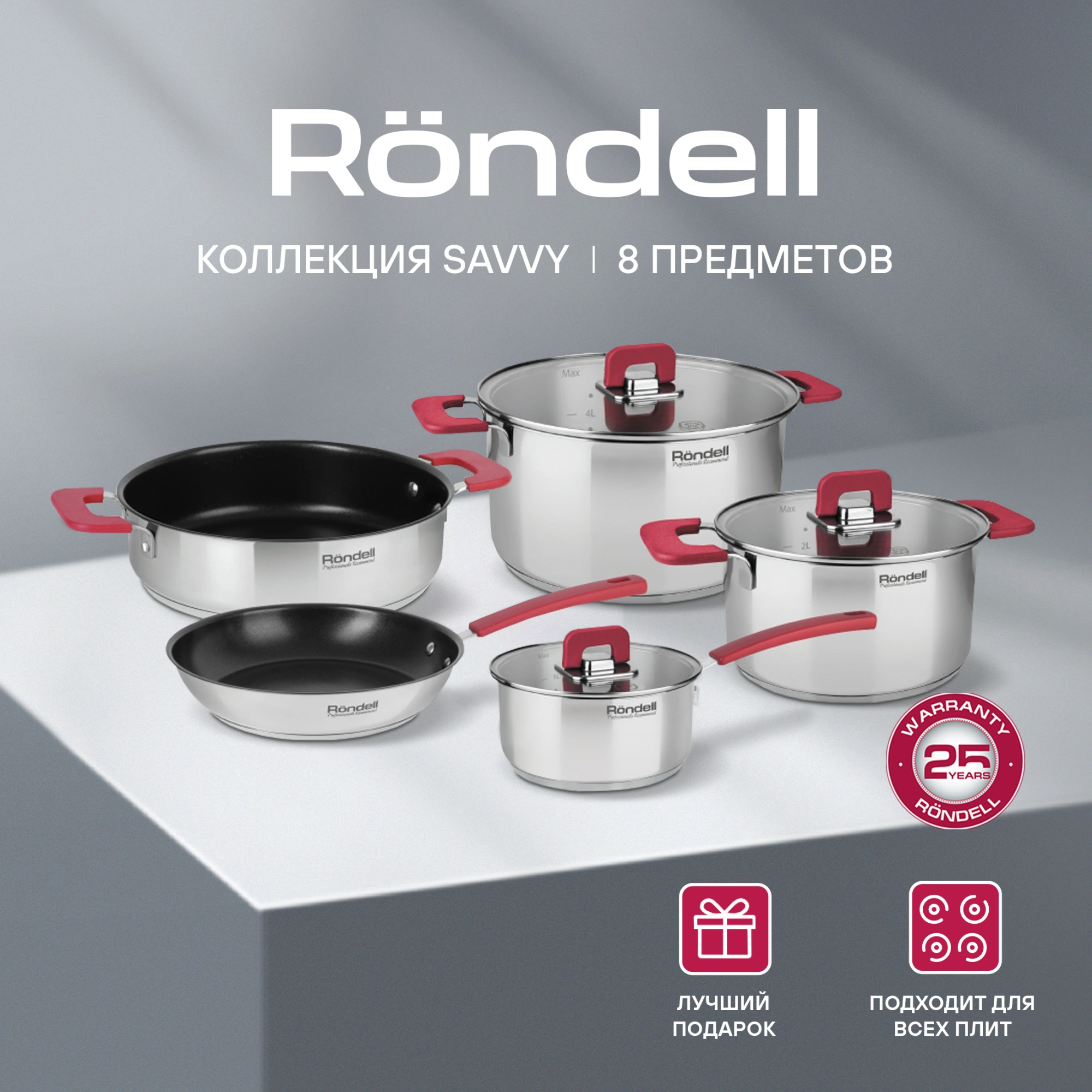 Посуда из нержавеющей стали Savvy – это настоящая находка для всех любителей кулинарии, а особенно ей будут рады те потребители, которые любят компактные наборы посуды для экономии места. Кастрюли различного диаметра, входящие в набор, легко складываются одна в другую, что очень удобно для хранения.