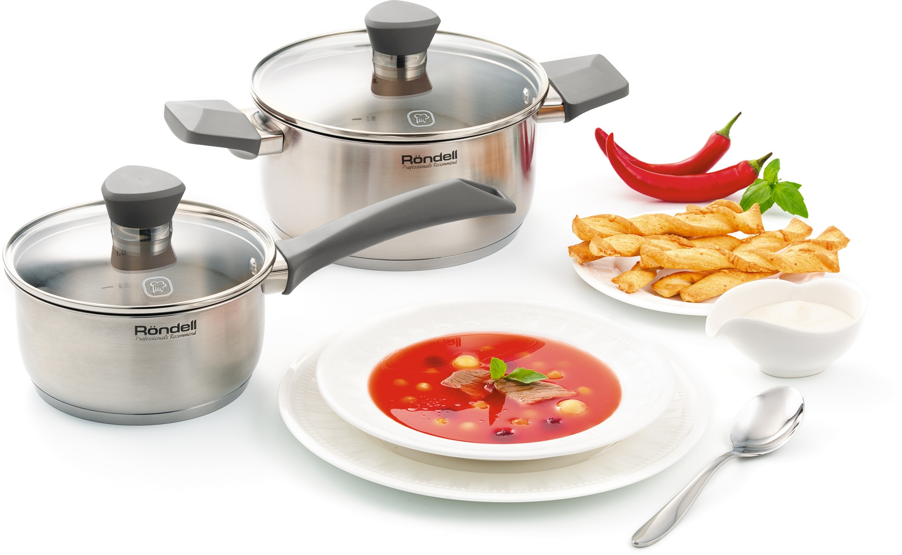 Посуда коллекции Strike из высококачественной нержавеющей стали. Особому комфорту в работе способствуют шелковистые на ощупь бакелитовые ручки с покрытием Soft Touch, а внутренние отметки литража обеспечивают возможность максимально точно соблюдать рецептуру без использования мерных кружек и весов.