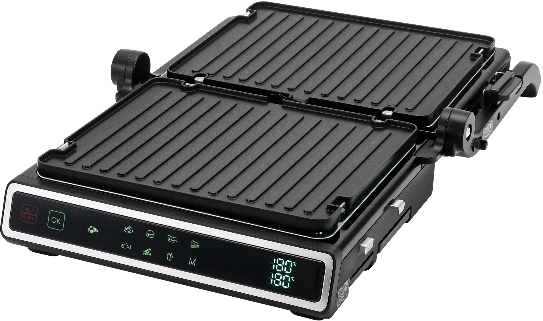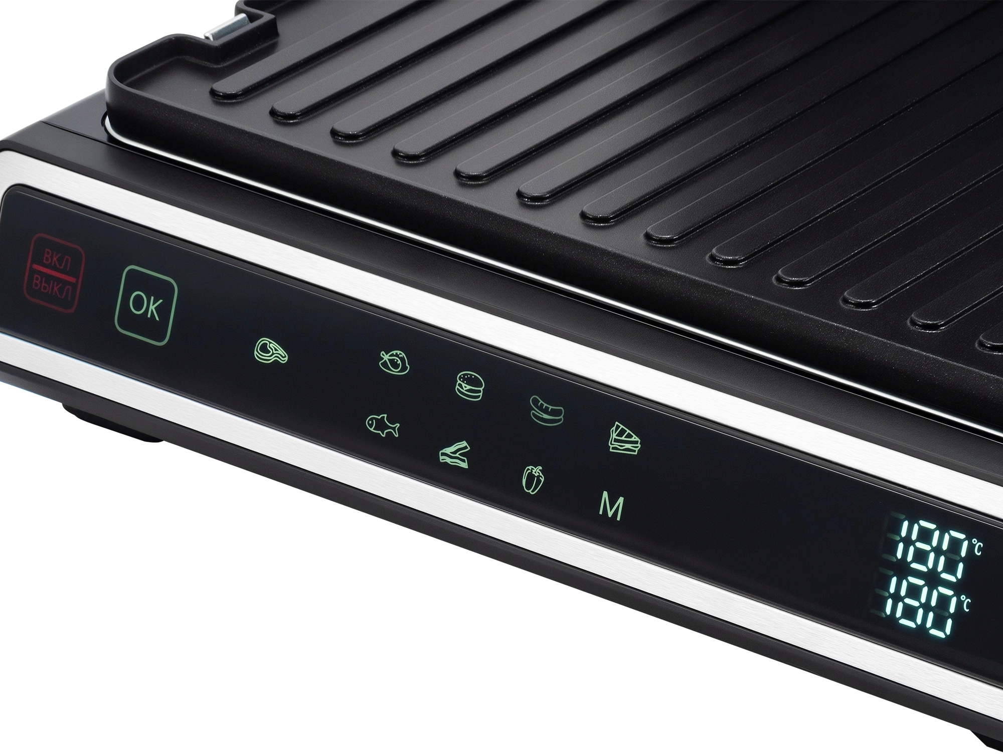 Интуитивное и понятное сенсорное управление всеми установками и программами. 7 автоматических программ для приготовления, а так же ручной режим, для оптимальных настроек для каждого типа продуктов, открытие на 180° для работы в режиме барбекю.