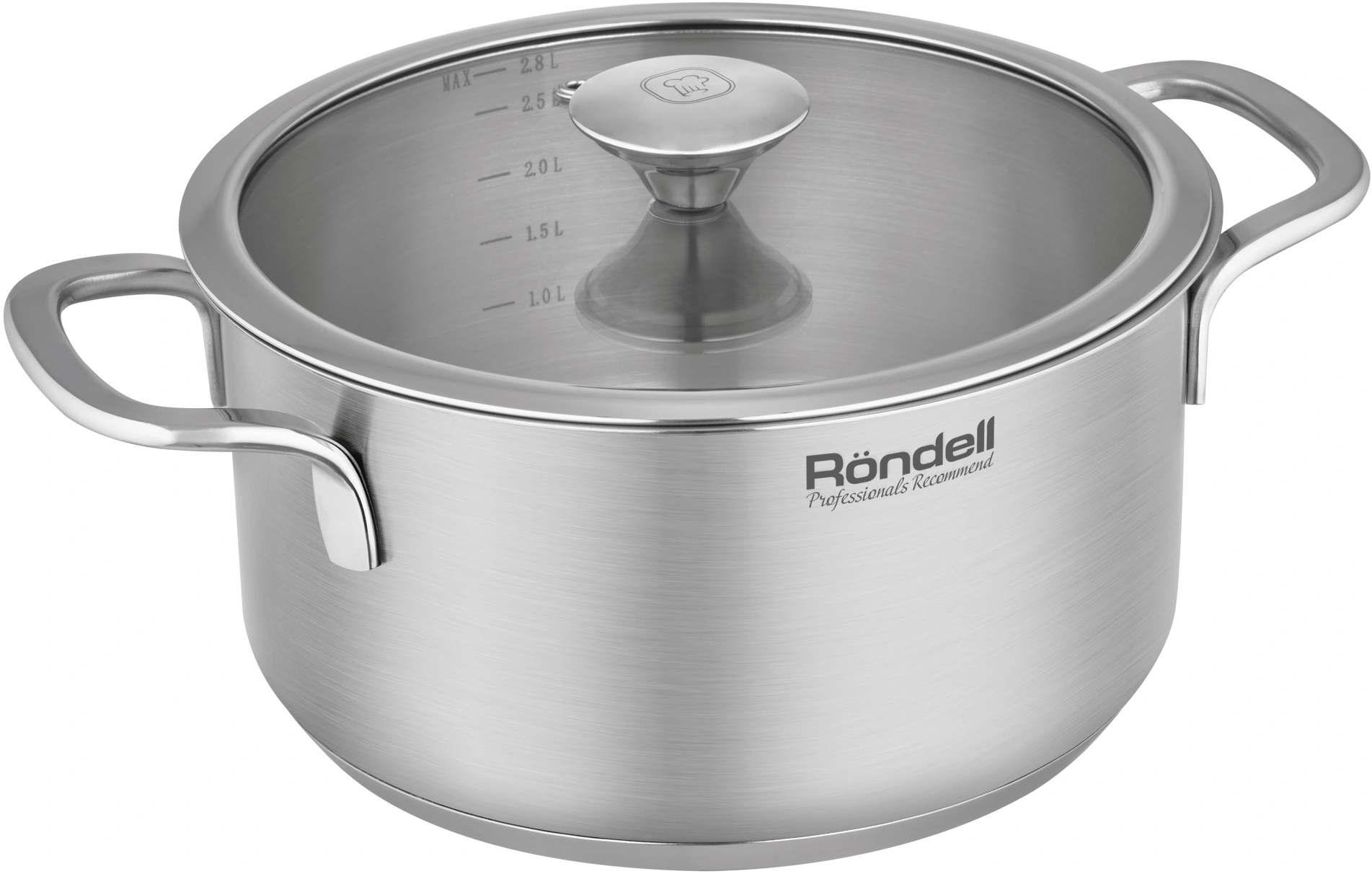 Технология: тройное вштампованное, а затем вплавленное дно без воздушных полостей. Аксессуары: стальная ручка. Преимущества: Плоская крышка из термостойкого стекла с паровыпуском и широким металлическим ободом; Оригинальное сочетание матовой полировки корпуса и глянцевой полировки аксессуаров.