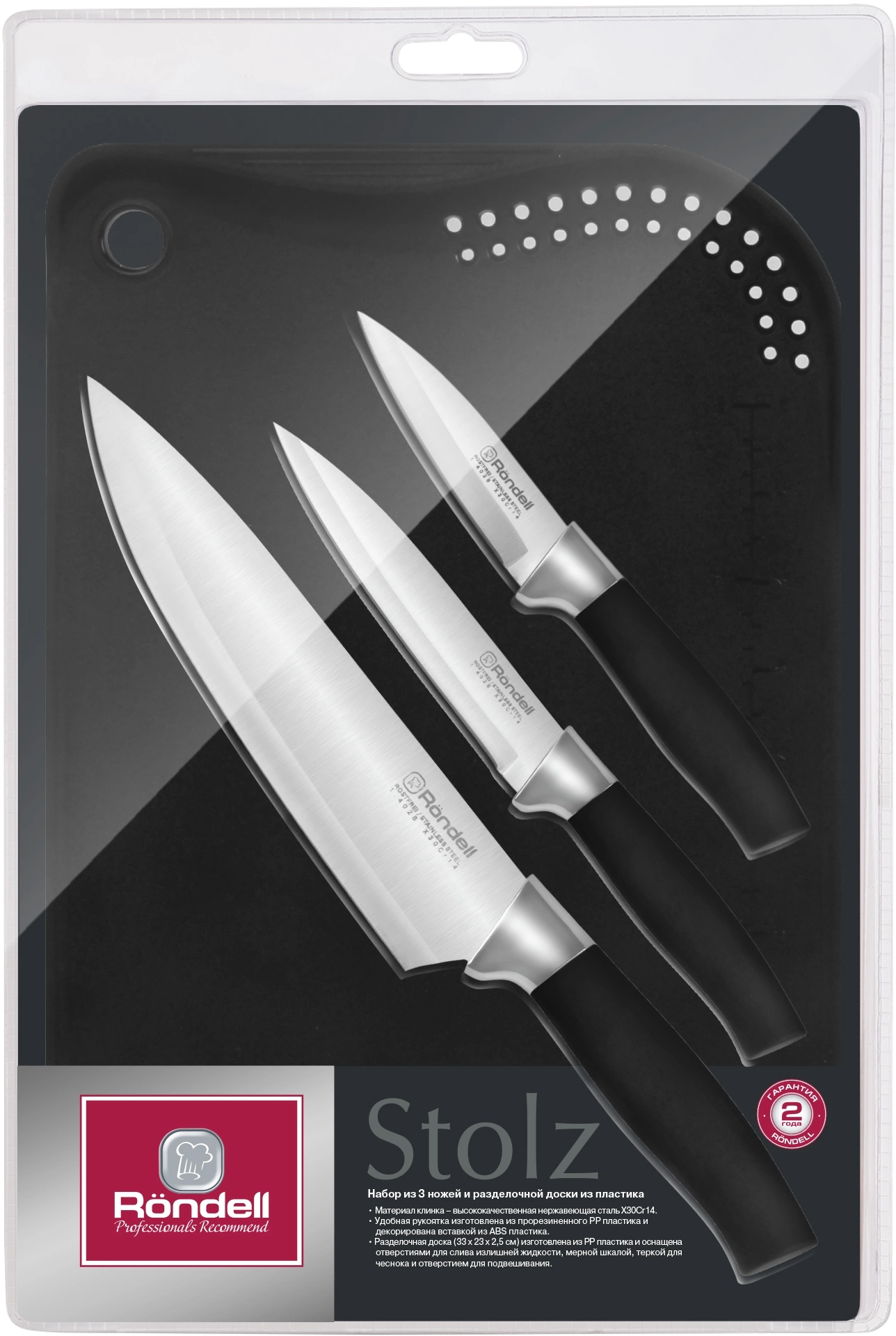 Название Stolz (в переводе с немецкого «гордость») обусловлено выдающимися техническими характеристиками посуды и эффектным дизайном. В комплекте: поварской нож 20 см, универсальный нож 12,7 см и нож для чистки овощей 9 см + разделочная доска (33х23х2,5 см).