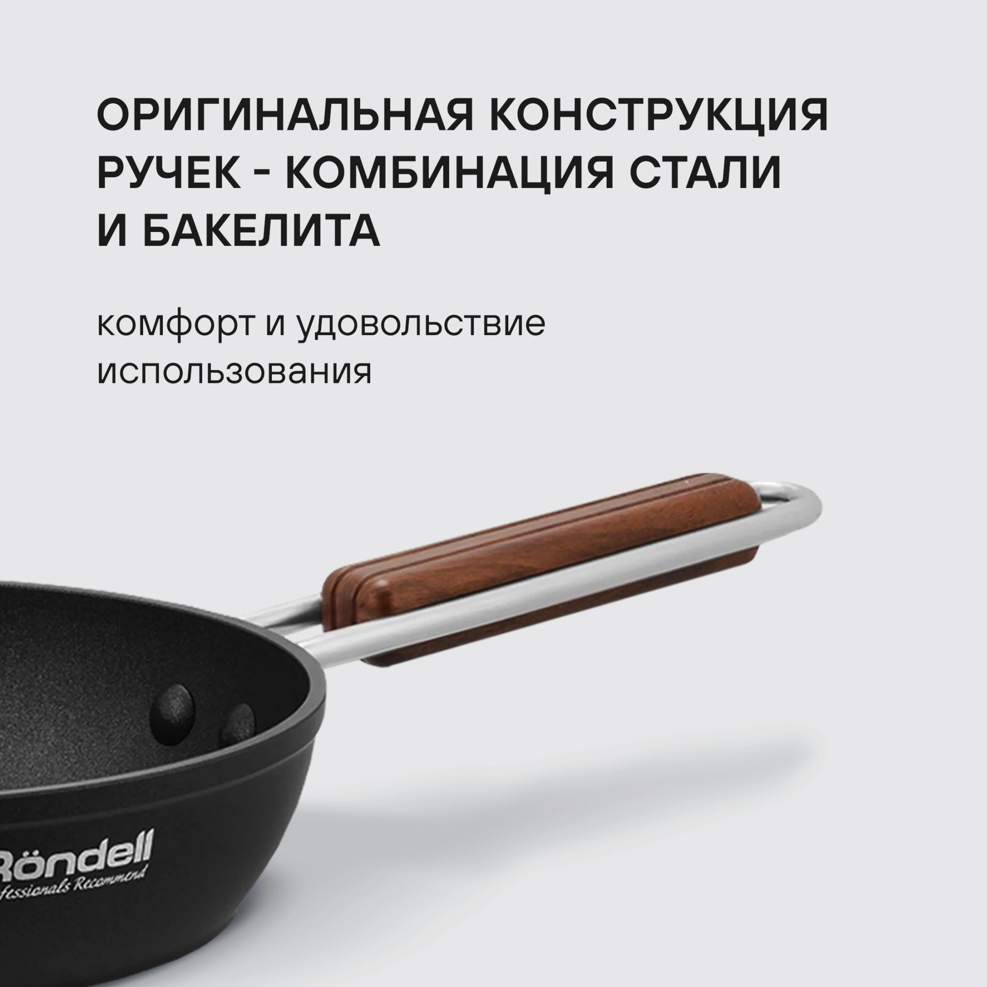 Аксессуары: оригинальная конструкция ручек - комбинация стали и бакелита, стилизованных под дерево. Преимущества: удобный хват. Xylan® Plus – двухслойное, долговечное антипригарное покрытие для интенсивного использования. Специальное внешнее термостойкое покрытие для легкого ухода.