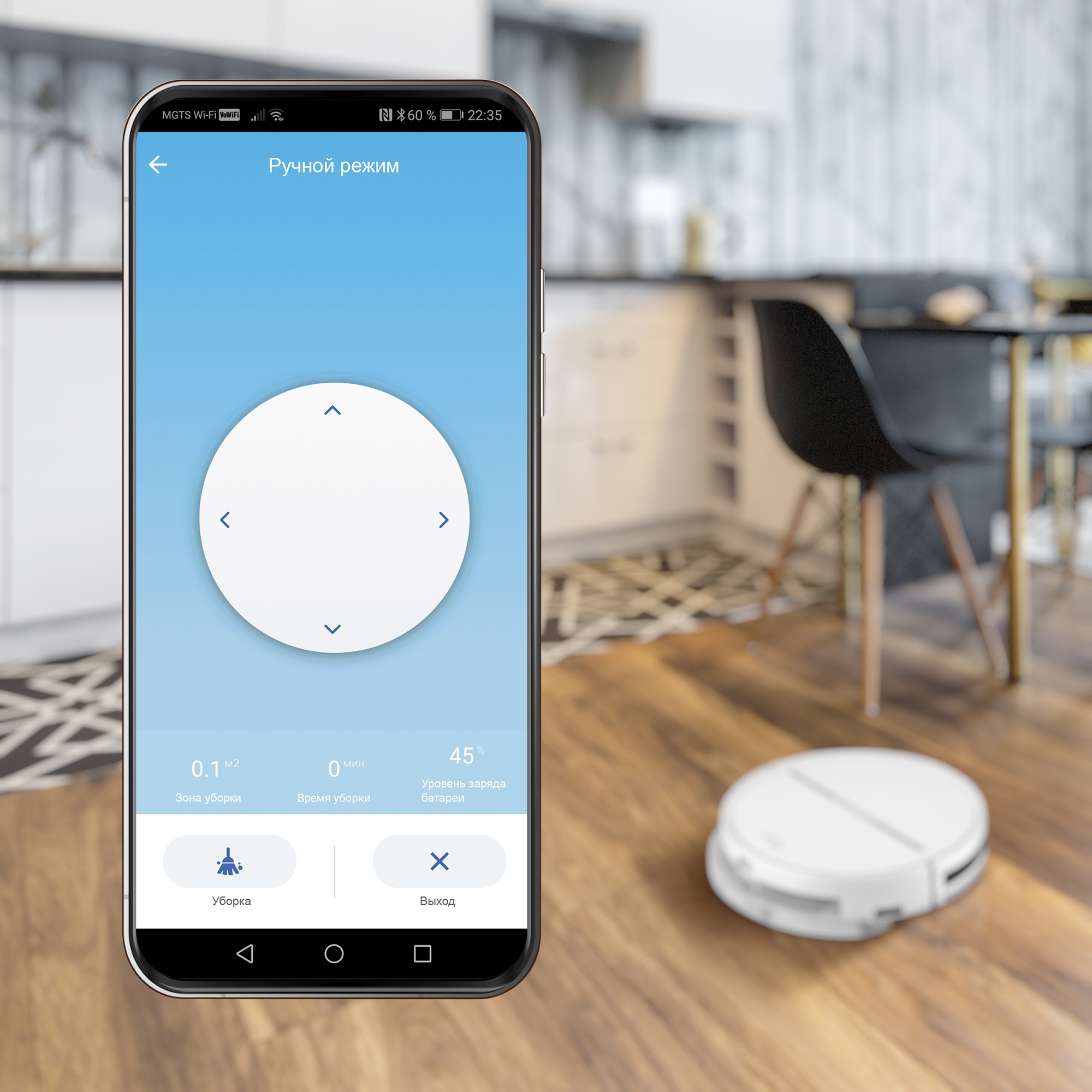Забыть о трудоемком мытье полов в квартире позволит компактный робот-пылесос VITEK VT-1807, предназначенный как для сухой, так и для влажной уборки. Управлять им можно непосредственно со смартфона через Wi-Fi: выберите один из четырех режимов работы прибора и настройте параметры. Прибор оборудован НЕРА-фильтром, задерживающим мельчайшие частицы аллергенов и микроорганизмов, поэтому очищаются не только поверхности, но и воздух. Благодаря гироскопической системе навигации пылесос двигается по правильной траектории: он оснащен тремя парами датчиков препятствий и тремя парами датчиков ступенек. Кроме того, в комплект с прибором входит магнитная лента, которая позволяет ограждать определенные зоны. В результате время уборки будет значительно сокращено. Что особенно удобно, пылесос возвращается на зарядку самостоятельно. Купите робот-пылесос VITEK VT-1807, и в вашем доме всегда будет чисто и уютно!